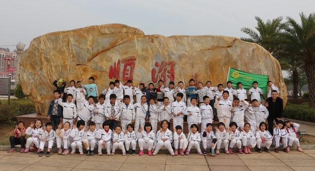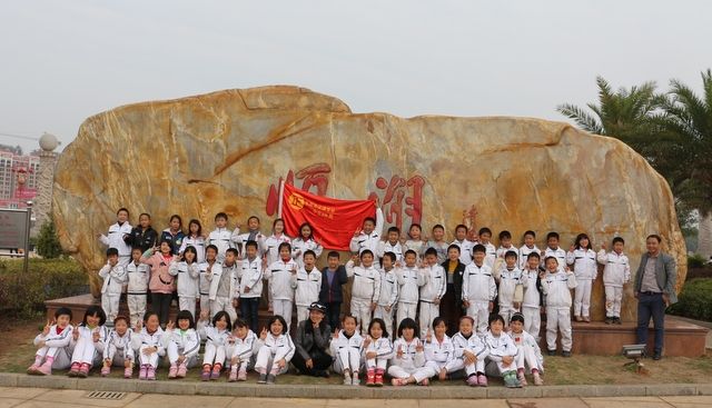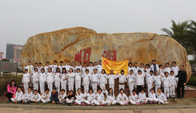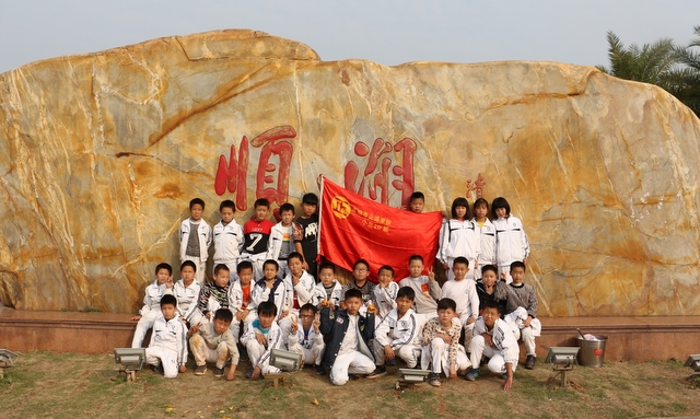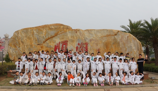 游园完毕,各班级在顺湖正门口的“顺湖”石碑前合影留念,并在石碑后面临水边面向曲廊拍了年级全家福。孩子们一张张可爱的笑脸定格在美丽的公园里。随后,部分班级现场表演了武术《五步拳》,全年级在音乐老师周子娟的指挥下表演了大合唱《小小足球赛》和《阳光总在风雨后》,引来了游人的声声赞叹!