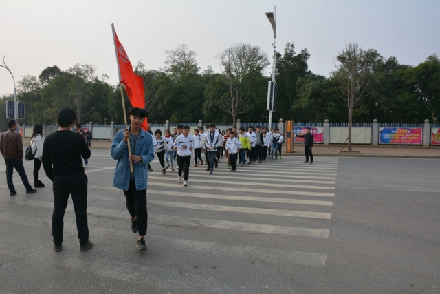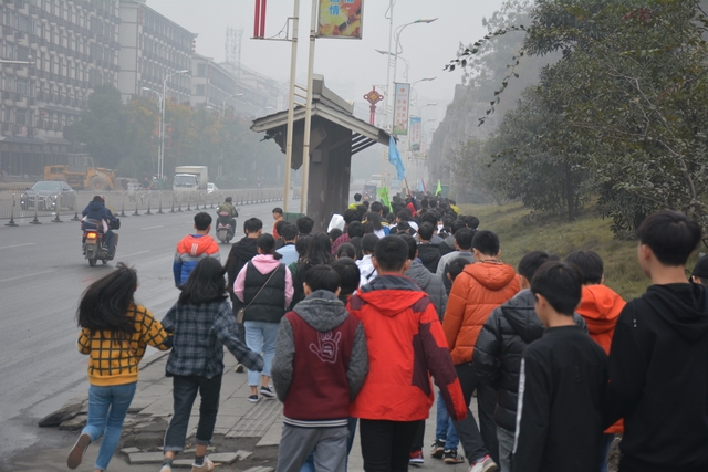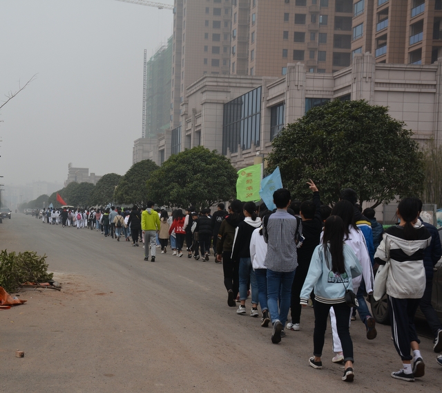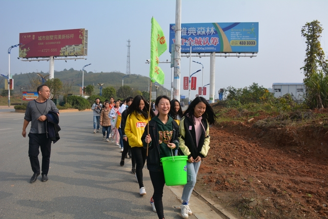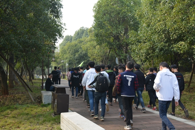 早上8点钟,我们到达学校国旗下的广场上集合,先由年级主任唐循南作了总动员。随后,兴奋的同学排着整齐的队伍从南门出发,一路浩浩荡荡向目的地顺湖步行。一路上我们有说有笑,快活地像只小鸟儿。