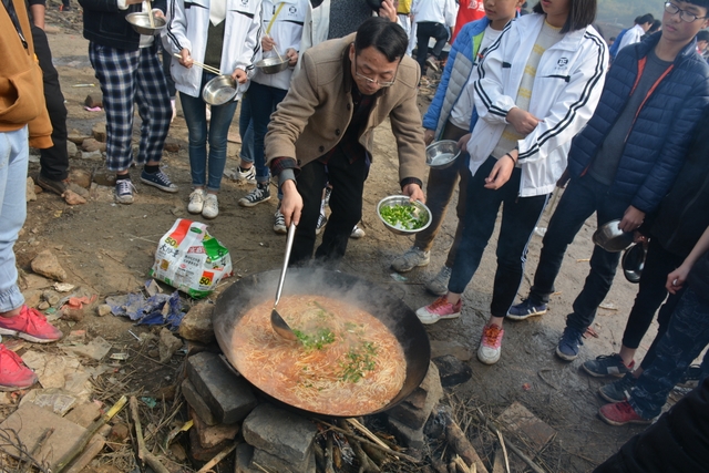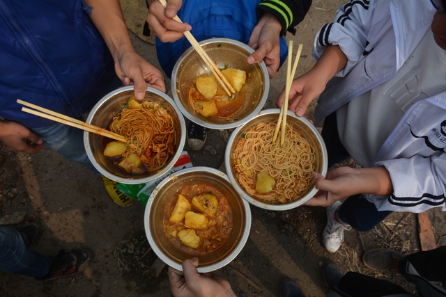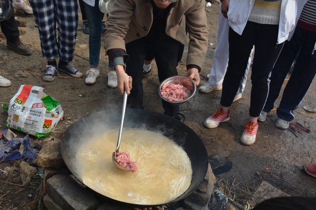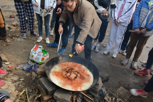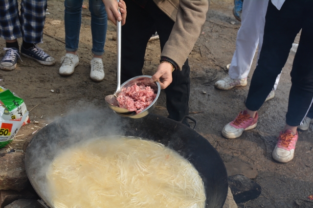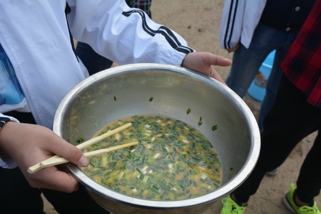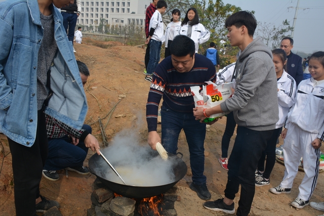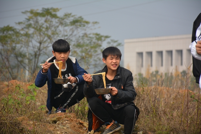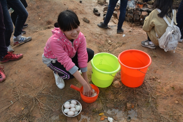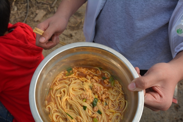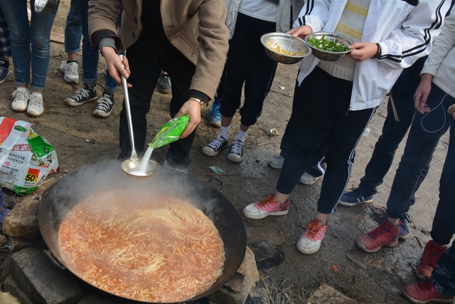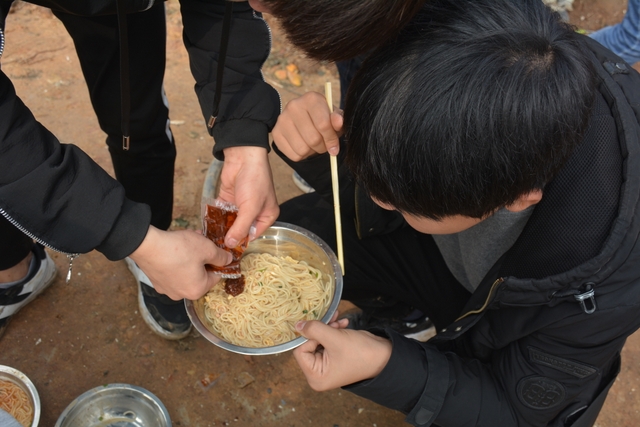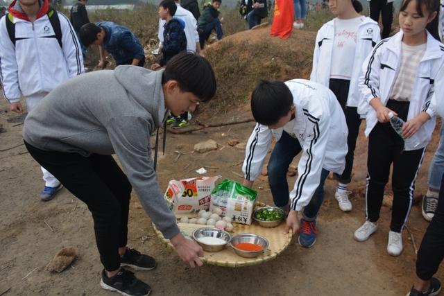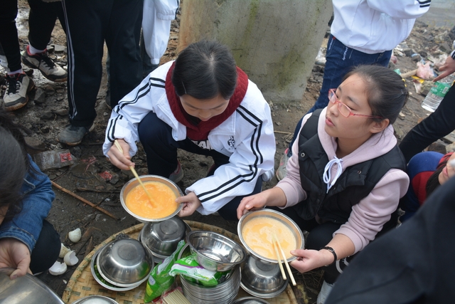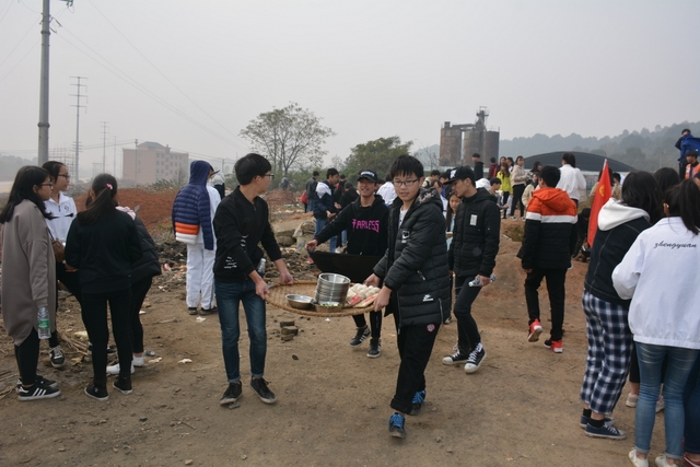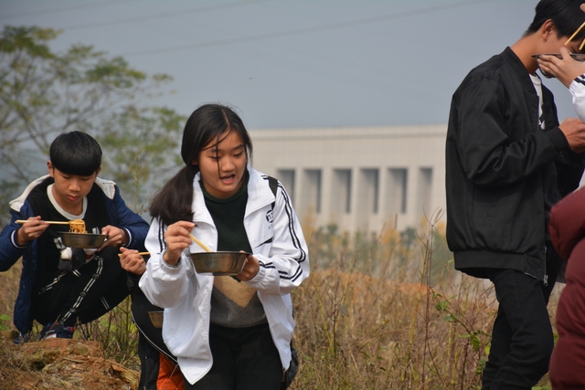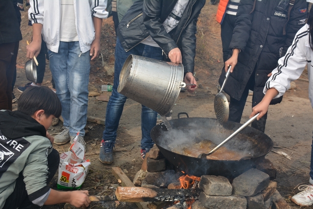 大约在十一点钟我们到达了南领仙下,直达野炊地点——新法院后面的空地,开始野炊。学校后勤为每个班级准备了野炊的食材。各个班的同学们各司其职,忙得不亦乐乎。