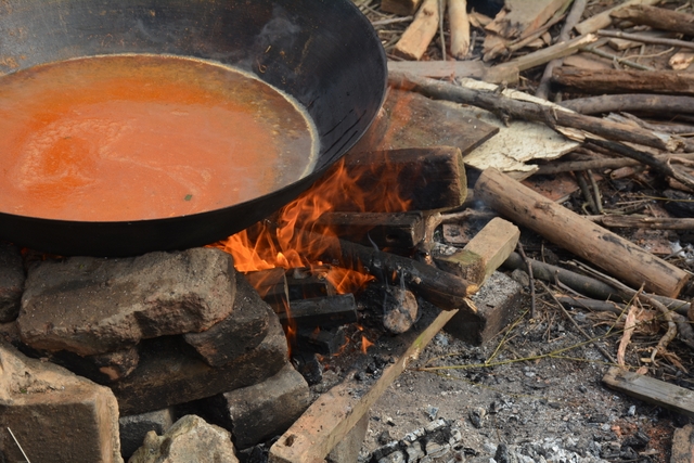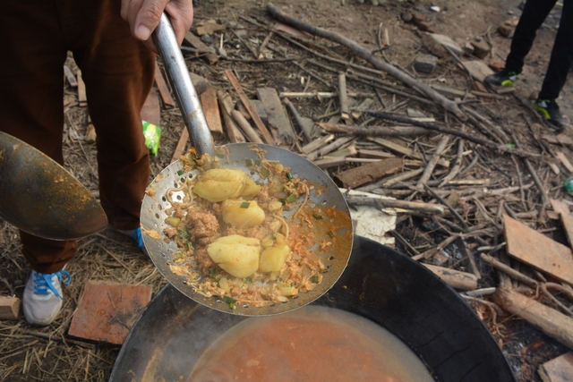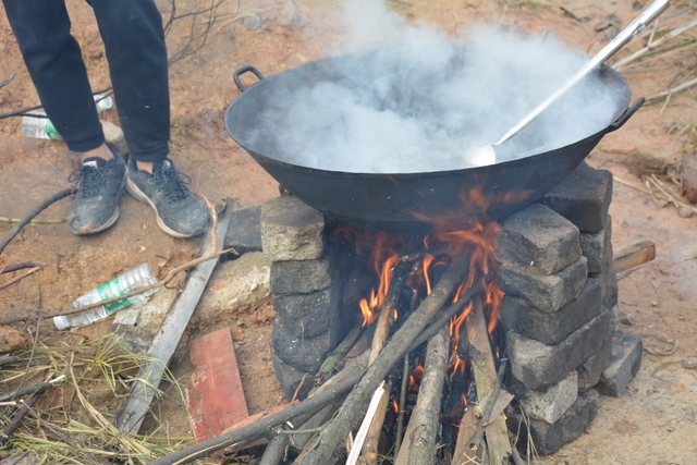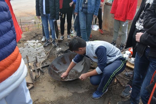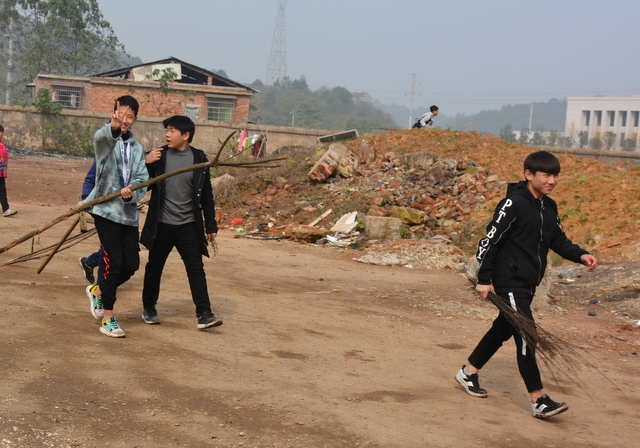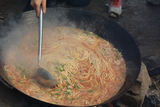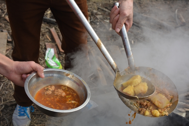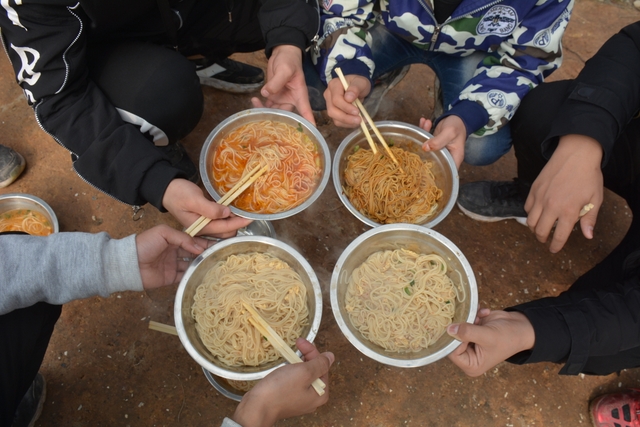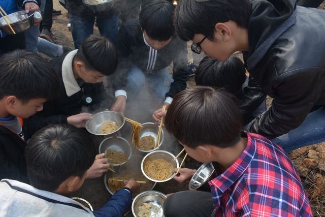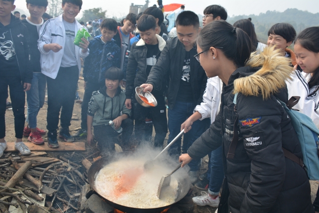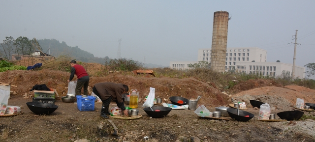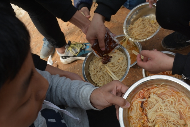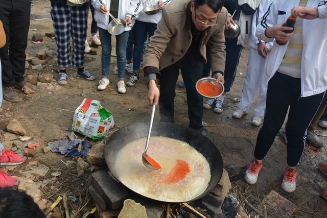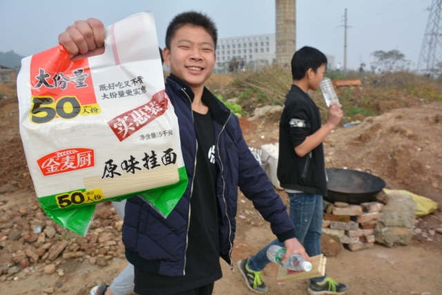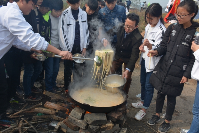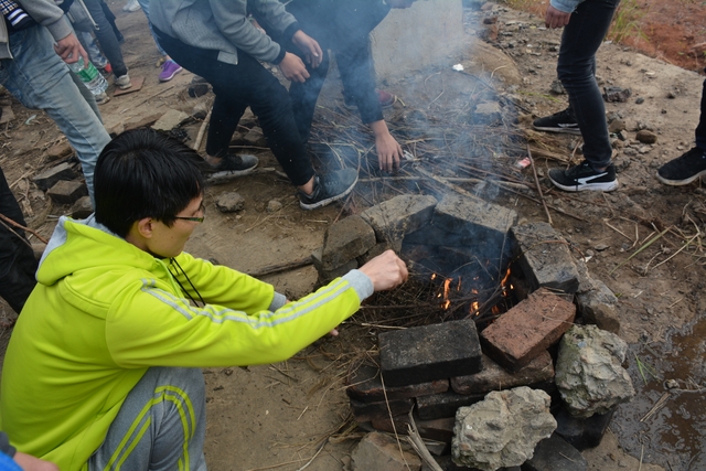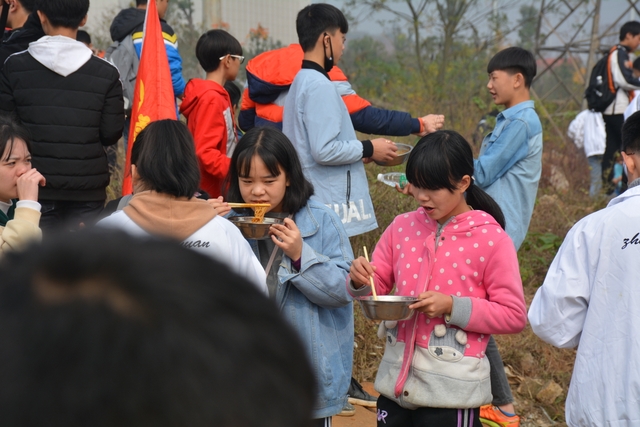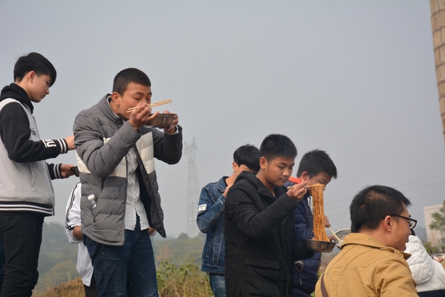 大约在十一点钟我们到达了南领仙下,直达野炊地点——新法院后面的空地,开始野炊。学校后勤为每个班级准备了野炊的食材。各个班的同学们各司其职,忙得不亦乐乎。