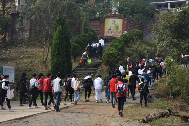 饱餐后,随着一声响亮的哨声,同学们立刻集合,向冬游的第一个景点——南岭禅寺进发。在那里,我们参观寺庙,礼拜菩萨,登高远眺,有登泰山而小天下的之感。