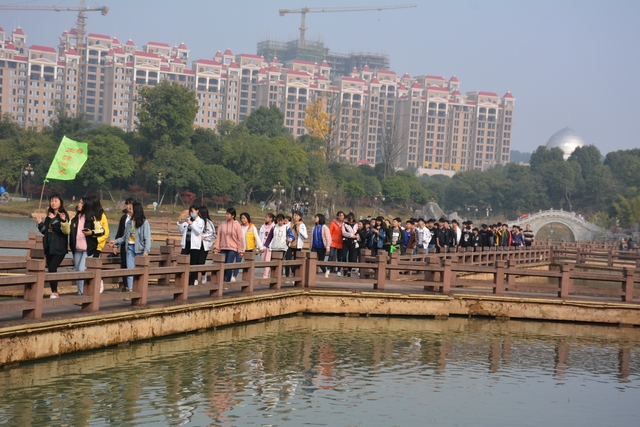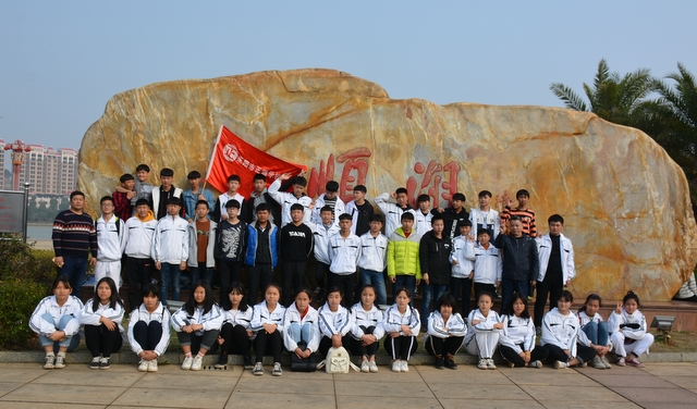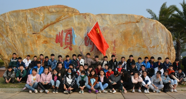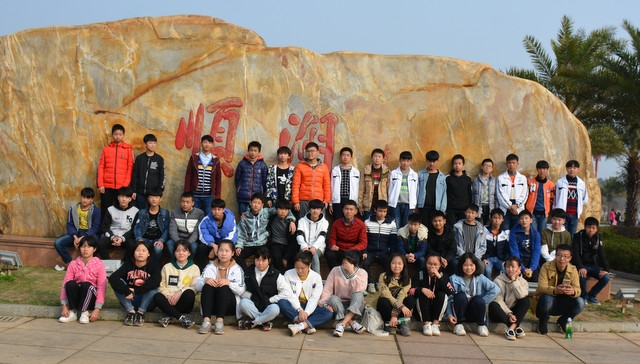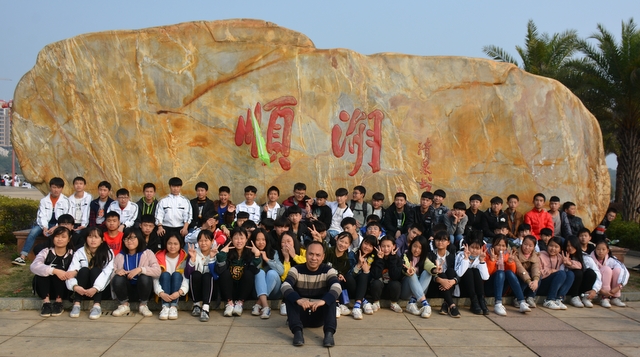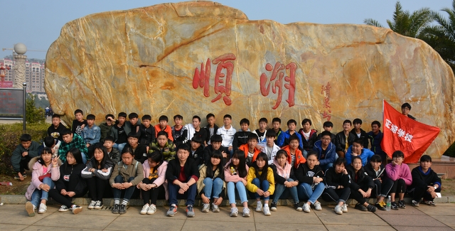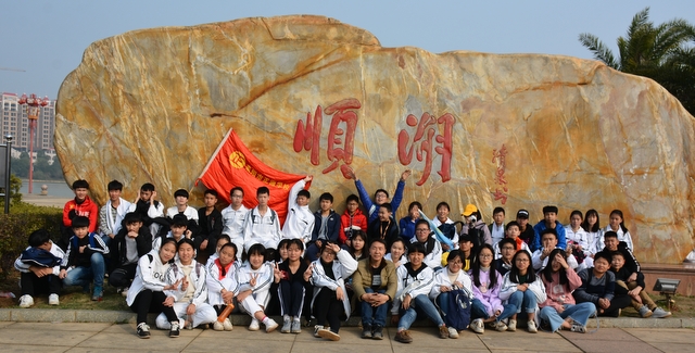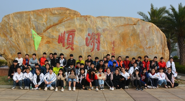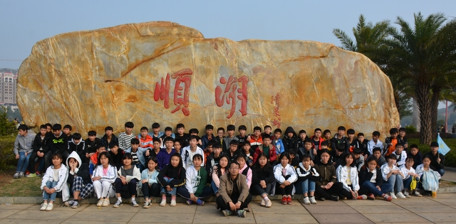 在下午三点时,游园完毕,各个班级在顺湖正门口的“顺湖”石碑前合影留念,并在石碑后面临水边面向曲廊拍了我们初三年级全体大合影。