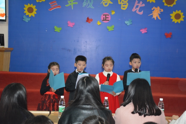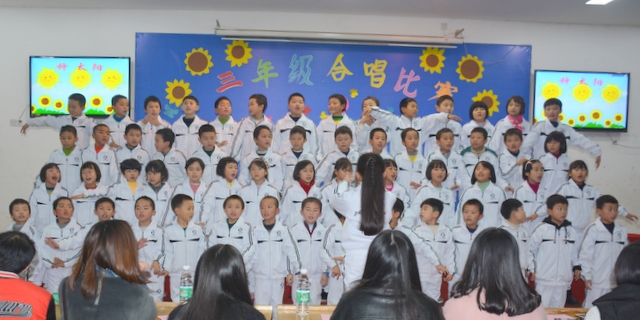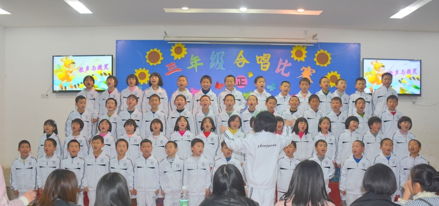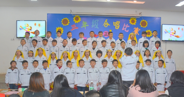 为了推进校园文化建设,丰富师生课余生活,促进同学们的全面发展,提高我们学校艺术教育工作的能力和水平。12月7日晚上小学部三年级举行了“祖国在我心中”合唱比赛。