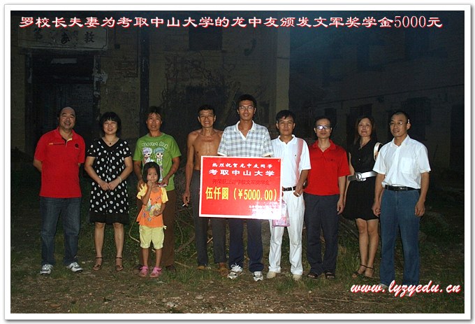 近日,正源学校校长罗湘云及夫人代表梁晓斌董事长率领高三老师多次下乡为考取名牌大学的正源学子颁发文军奖学金5000元。他们先后为考取中央财经大学的谢幽篁、考取华中科技大学的李泽亮、考取中国政法大学的周孚蓉、考取中山大学的贺志军、考取中山大学的龙中友、考取中国人民大学的贺佐琪等正源学子颁发了文军奖学金。