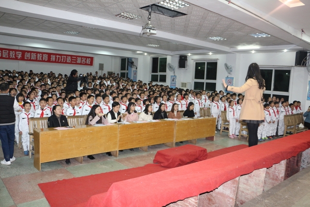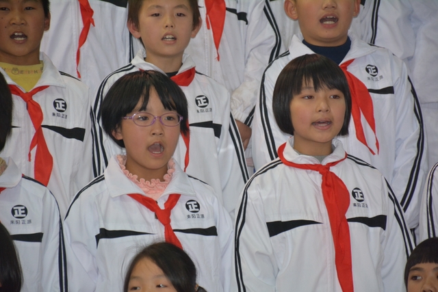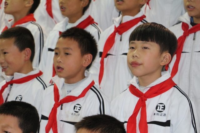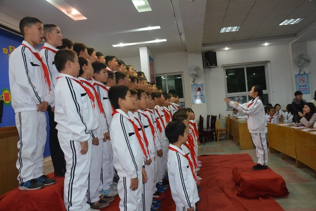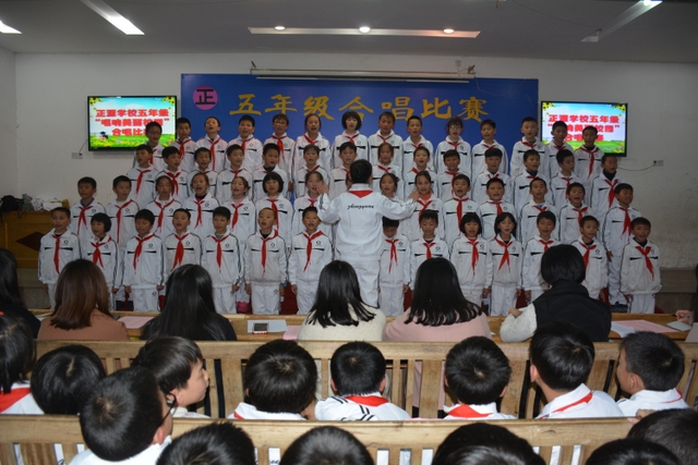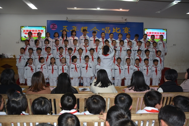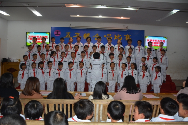 五年级16个班参与比赛。一首大合唱《打靶归来》响彻报告厅,比赛拉开帷幕。 197班演唱的《中国少年先锋队队歌》是第一个参赛班级表演的节目。181班的《瑶山夜歌》将比赛推向了高潮。各参赛班级着装整齐,演唱形式多样,一首首充满校园活力气息的歌曲,展现了学生良好的精神风貌。