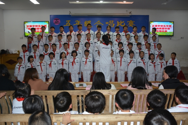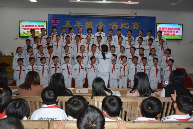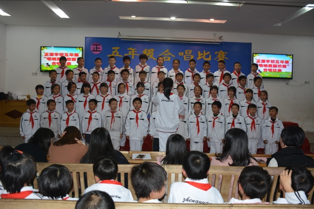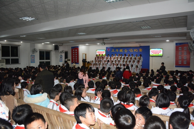 为了展示我校实施素质教育的丰硕果实,活跃校园艺术氛围,提高合唱水平,激发学生热爱祖国、热爱学校、热爱生活的感情,用高尚的艺术引导人,用完美的艺术塑造人,小学部安排:以年级为单位举办合唱比赛。12月 6 日晚,五年级以“唱响美丽校园,展现活力风采”为主题,率先拉开了合唱比赛帷幕。