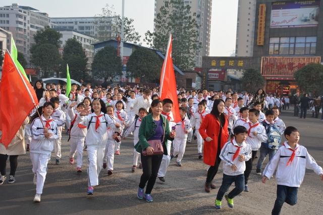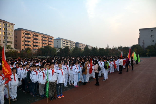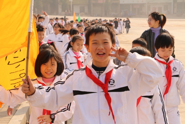 12月9日,艳阳高照,晴空万里。小学部五年级九百多名学生身着洁白的正源校服,齐刷刷地立定在宽阔的小学生运动场,正在接受年级主任王巧云、学部主任罗俊豪、学校副校长陈群华的战前动员令。九百多条鲜艳的红领巾在初阳的辉映下斑斓如霞,光彩夺目。