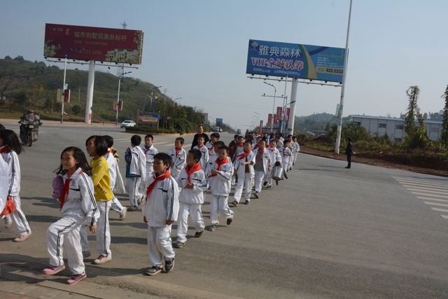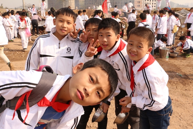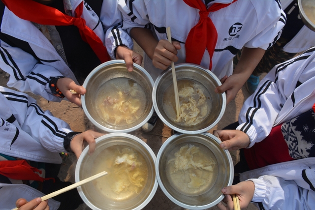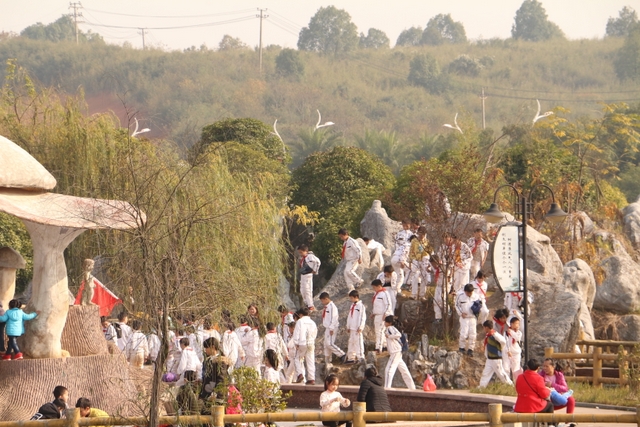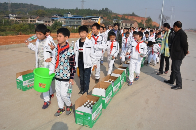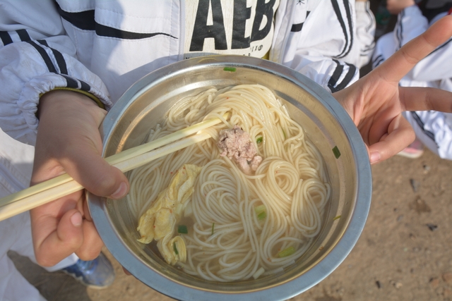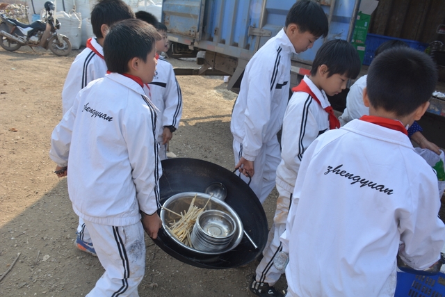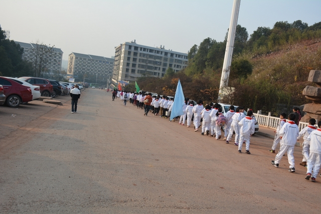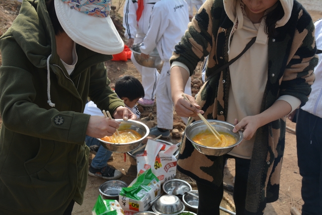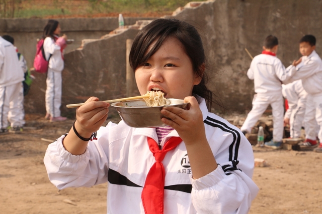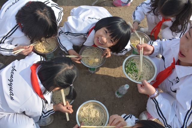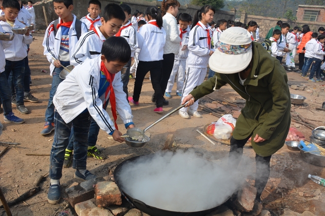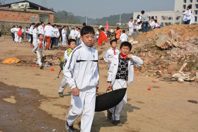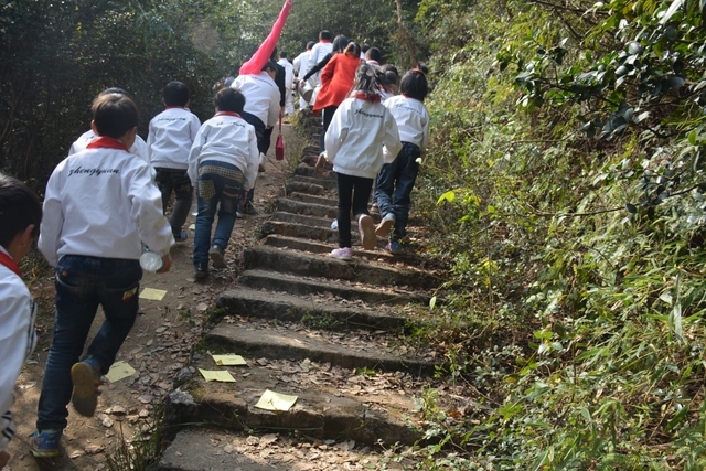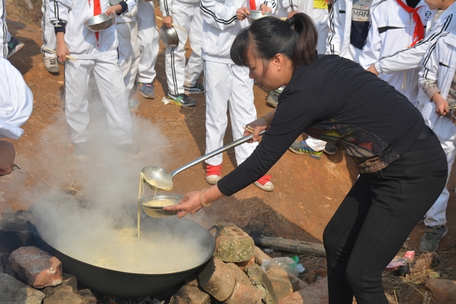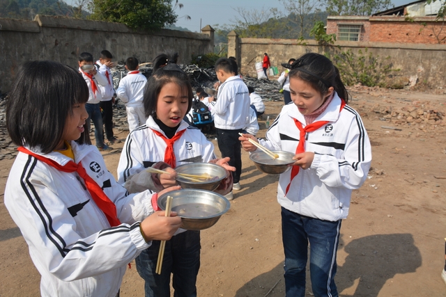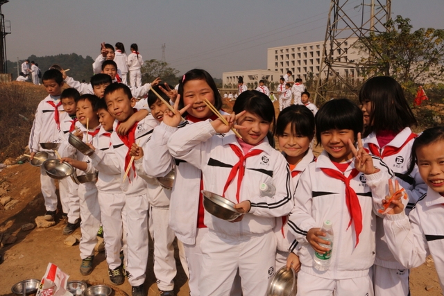 8时许,随着年级主任王巧云一声令下“出发!”,一条白色的长龙从学校西门逶迤游开了。一路笑语一路歌哟,九百朵鲜花在阳光的映照下争奇斗艳,各炫风姿;九百只雏鹰在蓝天上展翅翱翔,竞显羽翼。不知不觉间,冬游的第一站到了——耒阳市人民法院后侧的南岭山山脚。师生们要在这里埋锅造饭,席地野炊。学生们忙开了,老师们也忙开了,有的架锅,有的生火,有的捡柴,有的提水,袅袅炊烟伴随着阵阵清香,学生们自己煮的面条熟了。品尝自己劳动的佳肴,师生们大快朵颐,好不欢畅!
