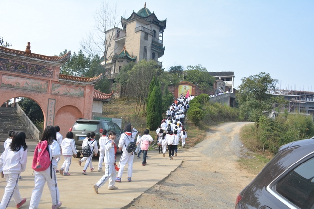 野炊毕,师生们稍事休息,又沿着崎岖、寂静的山路向南岭仙最高峰攀登。那里有一座古老的寺庙——南岭禅寺,这是此行的第二站。站在峰顶眺望,耒阳城区风貌尽收眼底,白云朵朵,耒水悠悠,别有一番心旷神怡。在佛前,学生们许下了美好的心愿——努力读书,努力成才,报效家乡,报效祖国!摄像机、手机闪个不停。摄影师、老师们忙不迭地抢拍下了这一幕幕美好、快乐、幸福的瞬间,花样盛开的笑容,也定格在如诗的画卷里。