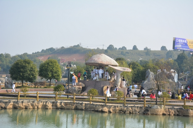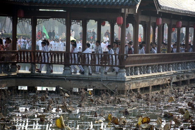 欢声笑语留在了佛门净地,师生们鱼贯下山了,向着此行的终点站——顺湖出发了。一路小跑,美丽的顺湖敞开温暖的怀抱,迎接了这批来自正源的翩翩少年。蓝天白云倒映在湖光山色里,湖光山色镶嵌在蓝天白云中。学生们在草皮上打滚,在嫩叶间嬉戏,在山石上穿梭,在亭台桥榭前拍照、合影,欢快的笑声漾起了顺湖的一圈又一圈涟漪。