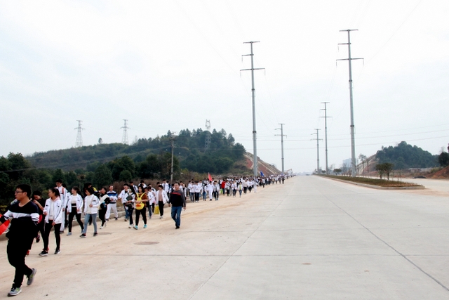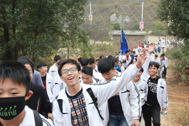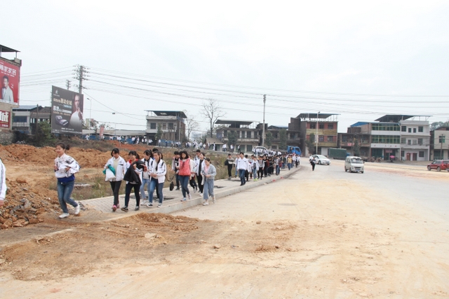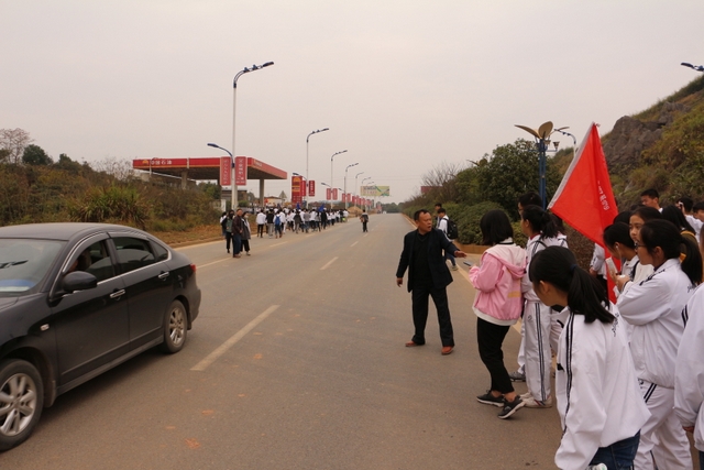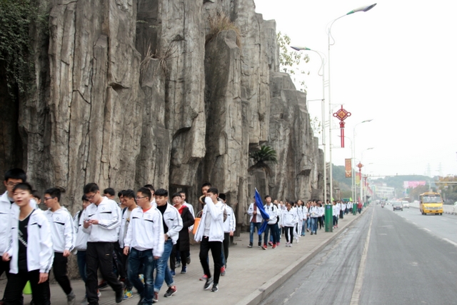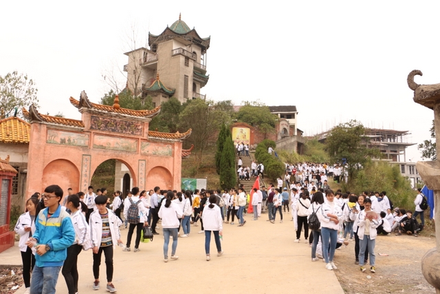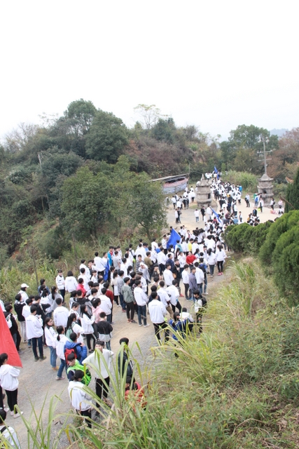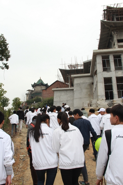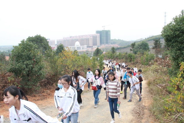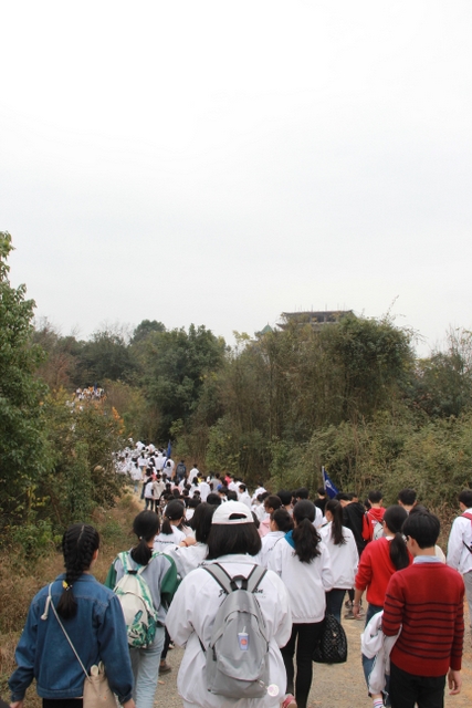 走过黄沙漫漫的国道,我们终于到了冬游的第一站——南岭仙。转入山间小路,迎面拂来一阵混着泥土与花草芬芳的清风,之前行路的疲惫顿时一扫而空。同学们三五成群,有的看着四周新鲜陌生的景色,内心充满了好奇。这看看那瞧瞧,有的谈论起了之前的路程,迫不及待地与他人分享起自己的感受。更多的同学正抱着无比期待的心情,憧憬着接下来的野炊活动。放眼望去,每个人的脸上都洋溢着笑容,大家似乎都卸下了沉重的压力与包袱,开始尽情地享受这一次美妙的冬游之旅。行到半路,大家的目光不觉被一座古庙所吸引。在庙的入口上方,刻着“大雄宝殿”四个刚劲有力的大字,庙的中央是一尊金身佛像,四周供奉着各式各样神色各异的佛像雕塑。大殿的一侧点着数十只蜡烛,烛光随风摇摆着,忽明忽暗,使得整个寺庙变得扑朔迷离。我渐渐放慢了脚步,向寺内拜了拜。面对着庄严肃穆的景象,我原本浮躁不安的心此时也平静了不少。现在早已过了山茶花盛开的季节,而路旁一树一树洁白的小茶花依旧开得热情,恰到好处的点缀着,几丛不知名的野花,使整幅画面变得更加生动。同学们一路嬉戏打闹着,原本漫长的路程在不知不觉中变快到了尽头,随着目标野炊地的不断迫近,同学们的热情愈发高涨。远处飘起了缕缕炊烟,大家的精神为之一振,开始加快了脚步向前奔去……