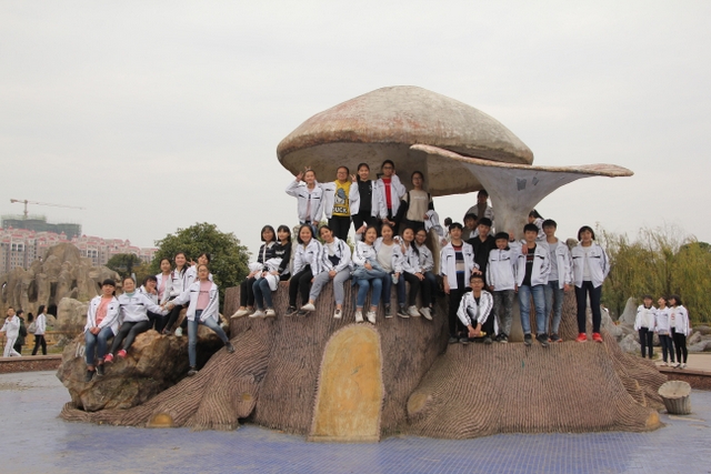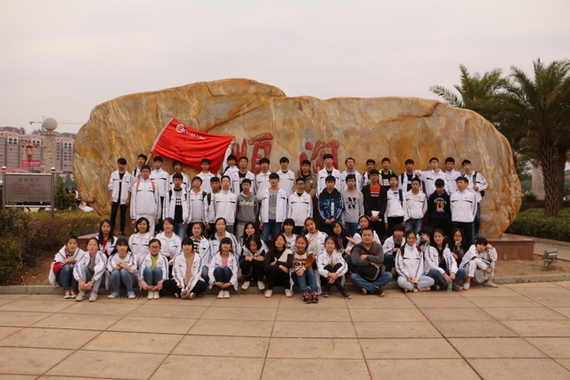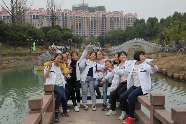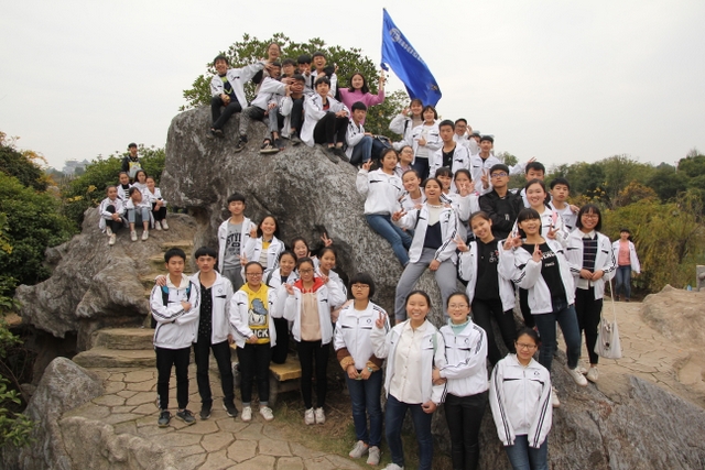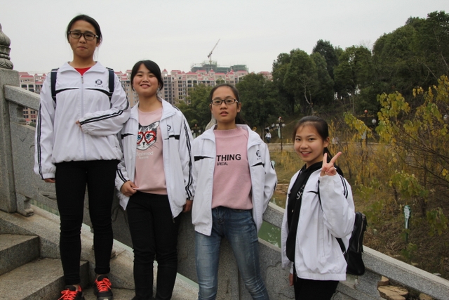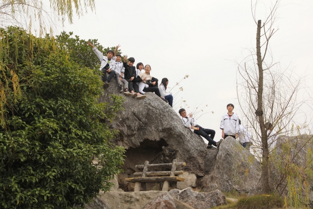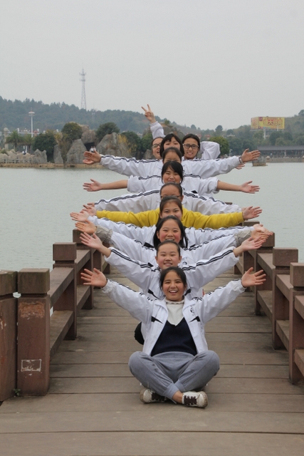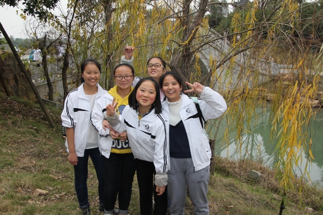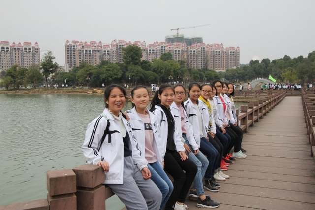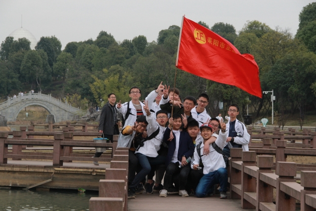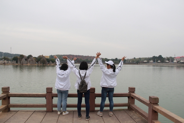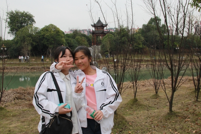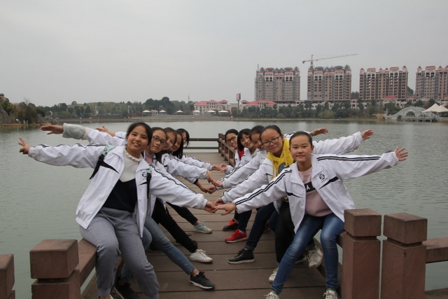 长廊后的顺湖似乎更为壮观辽阔,水平线隐没在远方看不真切。真可谓是;“冬水共长天一色。”我们很快在老师的组织下,排着队对着镜头唱班歌,把这一美好的回忆记录下来。大家都兴致高昂,声音越来越大,还想把隔壁班的歌声压下来。两个班都不甘示弱,你一句我一句唱得脸都涨红,最后唱完,两个班都笑做了一团。到了自由活动时间,有人好奇地蹲在水边,仔细观察着。有人放起了风筝,快乐得像小鸟一样飞奔,有人别了一片落下的银杏叶在耳边,拍摄自己与耒阳西站的合影……其乐融融,一派和谐,人与自然本就应该这样,没有破坏,没有伤害,一切都是那样的快乐。然而快乐的时间终究是短暂的,最后一项活动便是班级大合照,我们在顺湖大门的那块巨石前摆好了阵型,拍了一张又一张仍呼不够,磨蹭了许久才依依离去。我最后一眼望向它想到,顺湖,等我下次还来看你。