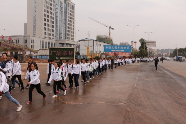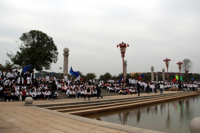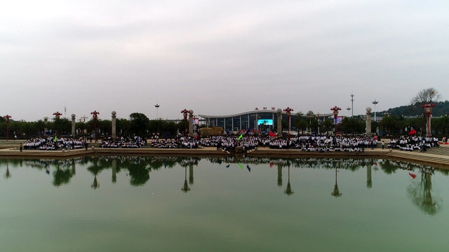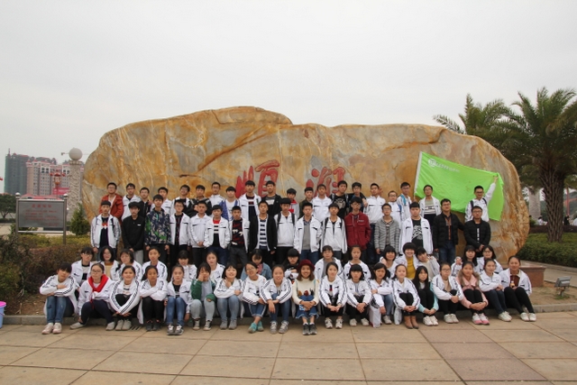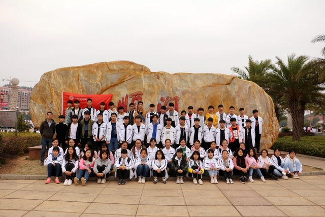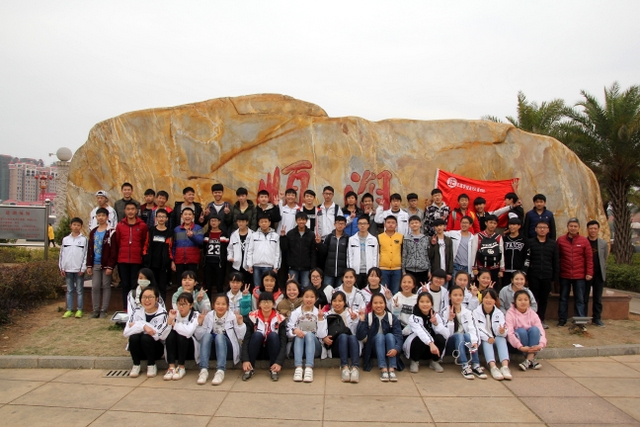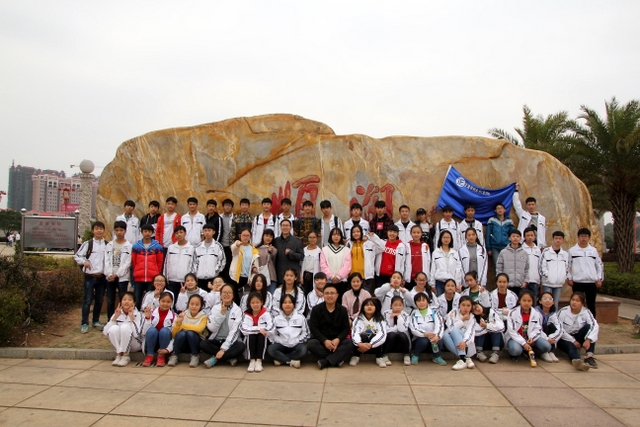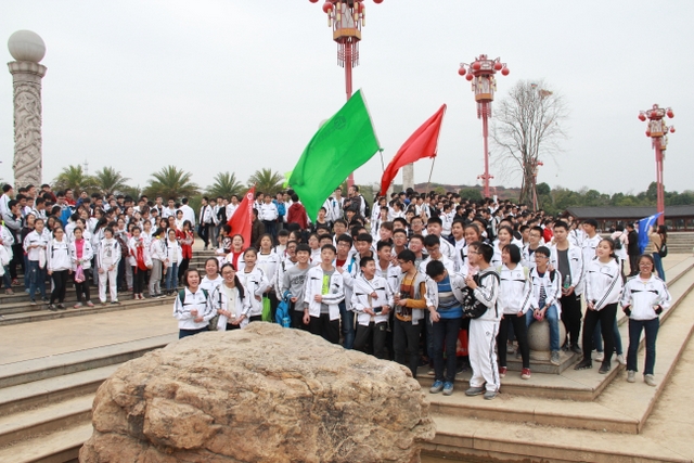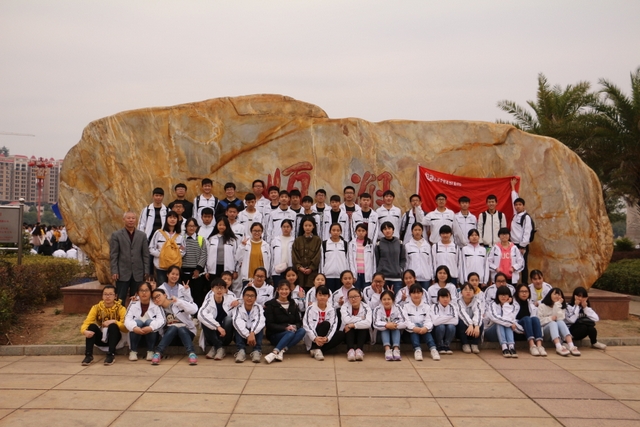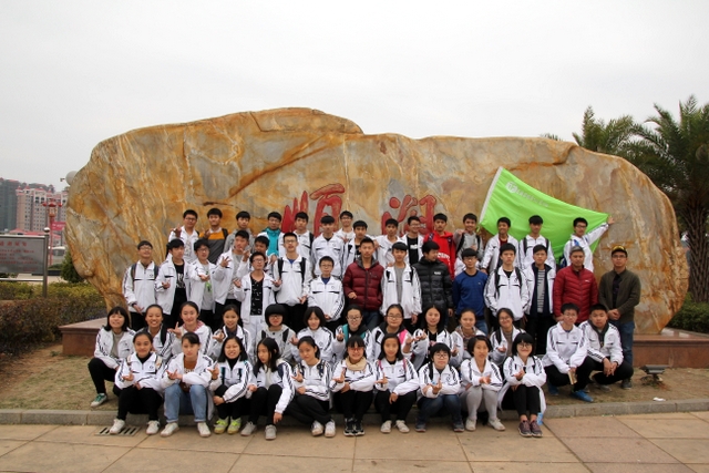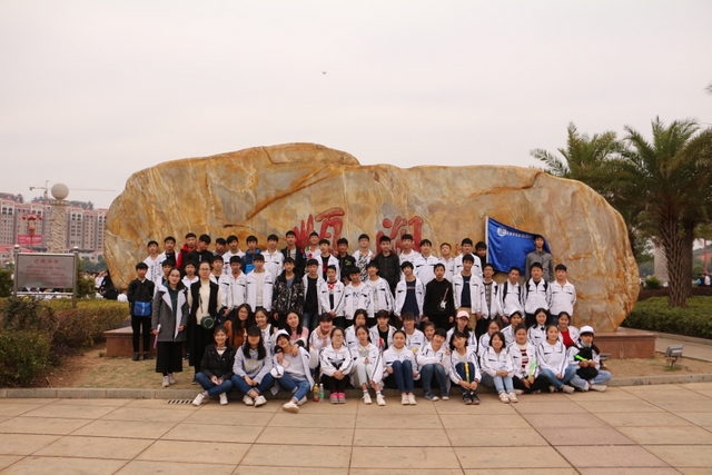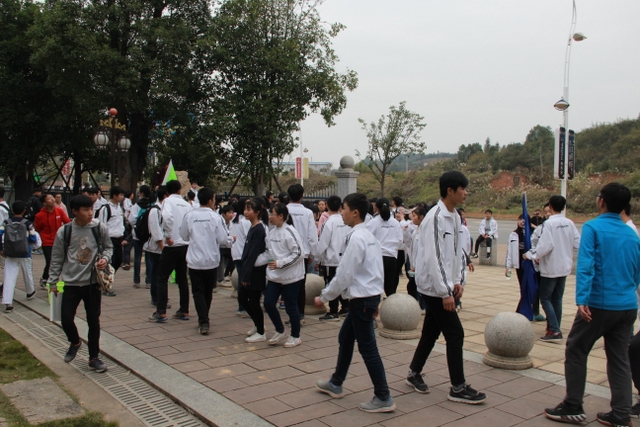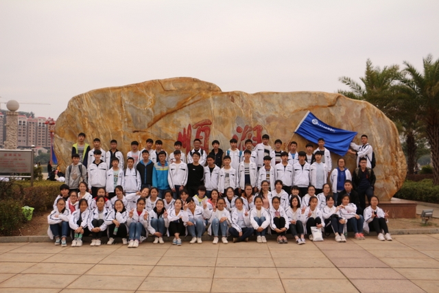 长廊后的顺湖似乎更为壮观辽阔,水平线隐没在远方看不真切。真可谓是;“冬水共长天一色。”我们很快在老师的组织下,排着队对着镜头唱班歌,把这一美好的回忆记录下来。大家都兴致高昂,声音越来越大,还想把隔壁班的歌声压下来。两个班都不甘示弱,你一句我一句唱得脸都涨红,最后唱完,两个班都笑做了一团。到了自由活动时间,有人好奇地蹲在水边,仔细观察着。有人放起了风筝,快乐得像小鸟一样飞奔,有人别了一片落下的银杏叶在耳边,拍摄自己与耒阳西站的合影……其乐融融,一派和谐,人与自然本就应该这样,没有破坏,没有伤害,一切都是那样的快乐。然而快乐的时间终究是短暂的,最后一项活动便是班级大合照,我们在顺湖大门的那块巨石前摆好了阵型,拍了一张又一张仍呼不够,磨蹭了许久才依依离去。我最后一眼望向它想到,顺湖,等我下次还来看你。