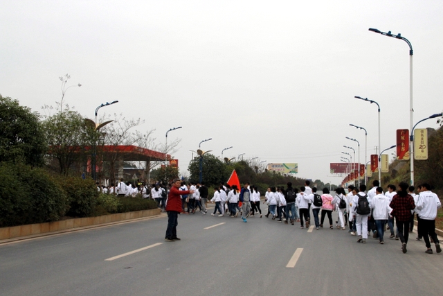 一面面彩旗被风儿吹起。小灿哥和陈副校长语重心长地叮嘱着我们要注意安全,爱护环境,注意精神风貌……慈父严母总是遇上孽童顽童——我们哪有心思听呀,个个笑嘻嘻,兴高采烈着,回忆着,憧憬着。我深深地吸一口,早晨清新的空气——哦——是甜的,像混着巧克力的香草冰淇淋。