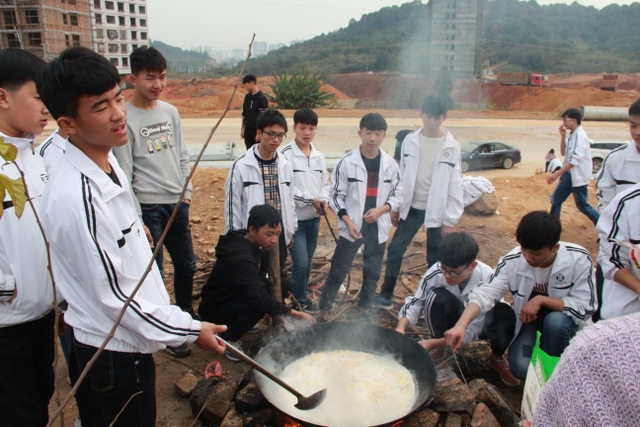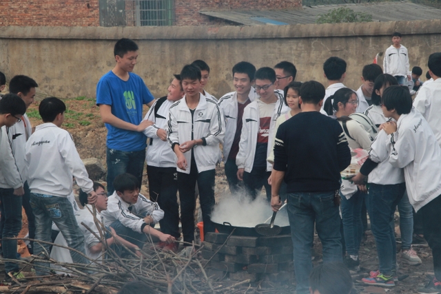 这次主厨的是我们的英语老师,MIss Xie。他吩咐我们将面放入沸腾的水里,他则负责将面搅散。之前还抵死反抗,将头笔直伸入水里的面条,一下就软化了,低下了他那高昂的头,沉入水底,乖乖地成为我们的碗中餐。时间差不多了,只见Miss Xie先把葱花一撒一搅,撒下些盐,再一翻转,过不了多久,一锅引人直流口水的面就出锅了,旁边等候已久的同学可迫不及待了,管他三七二十一先饱餐一顿,安抚一下受伤的肚子。