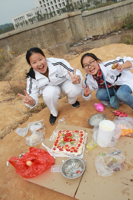 除了令人垂涎欲滴的自制烧烤是冬游的一大特色外,敢于创新、善于制造的我们,还在现场一个小山堆上做出了一个特色的“正源蛋糕”。因为这个学期来高一的我们将会面临文理分科,这次的冬游,也可能是我们大家最后一次度过的大型活动了。十分不舍外,还想让这次活动更有意义,所以就决定做个蛋糕来庆祝这次的活动。之所以说是正源的蛋糕,当然是因为精打细算的我们并没有买蛋糕店的食材,而是选用了正源特色夜宵--蛋糕来做我们的蛋糕胚,再从超市采购了一些嵌在蛋糕上好看的水果:圣女果、猕猴桃、橘子等。没有丝毫经验的我们,凭借着吃了十几年蛋糕的经验,照猫画虎,竟然做出了个卖相十分不错的蛋糕。引来了许多人诧异,惊讶的眼光,面对他们不停的问题:“你们怎么做到的?”我们只能自豪地说:“用脑做的。”蛋糕作为烤后甜点,实在是再好不过了,于是我们郑重地端着蛋糕,大家围在一起,还插了几根蜡烛,唱起了响亮的班歌“最渺小的我,有大大的梦!”是,谁能想象到我们能在荒山野岭小土丘上,用最简单的食材做出了一个这么漂亮的蛋糕,就连我们自己也感到不可思议。尽管这个提议,一开始提出就被很多人给否定,认为“不可能”,不管是食材的保存,做工的复杂,做蛋糕都算是一个复杂的问题。但我们敢想敢做敢于对未知挑战,如果试都不试一下,谁会知道我们就一定会失败!于是我们欣慰地吃着自己的劳动成果。第一次觉得正源的蛋糕比外面买的蛋糕还要好吃100倍。然而,没有奶油大战的蛋糕是不完整的蛋糕。不知是谁,趁在别人不注意时在别人脸上抹了一点奶油,于是一场世界级的大战就在小山丘上兴起,你抹我的左眼,我摸他的右脸。出其不意,却又防不胜防,最遭殃的恐怕就是我们数学课代表,由于平时严格对我们,倒是冤家过多,所以这时他早已“白发”苍苍,连眼镜也不放过,到处都充盈着我们的欢笑声。最后每个人都像唱白脸的曹操,谁也忘记了学习的压力,忘记了成长的困惑和迷茫,真正地在享受同学间共同相处的快乐。我们希望不管以后会走多远,经历多少,都会像正源人这种敢打敢拼,敢为人先,活泼,向上的精神和品质,像今天这样传承和发扬。