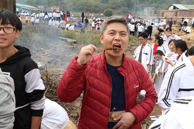 有了同学们和老师们的肯定,大家也更加活跃了。旁边的同学也都纷纷过来给我们打下手,我们团结一心。香喷喷的烧烤一串接着一串,同学们你一口我一口,周围洋溢着快乐的气氛。这快乐,伴随着我们的欢声笑语,正在蔓延。