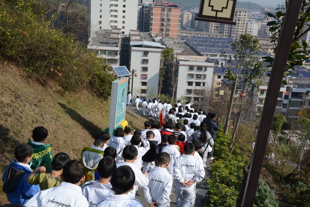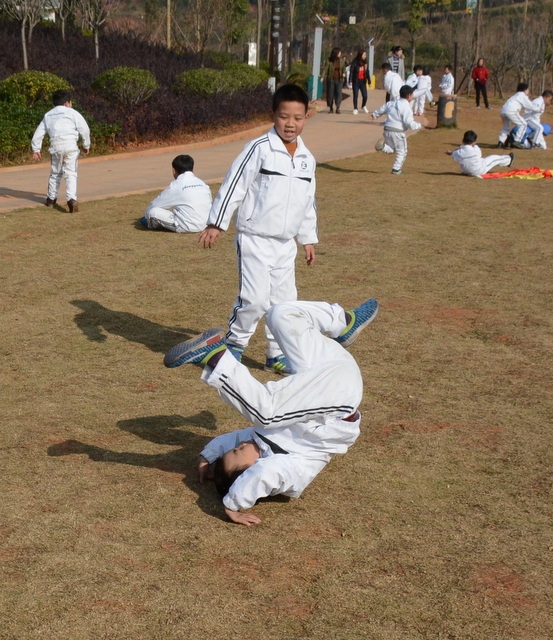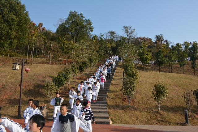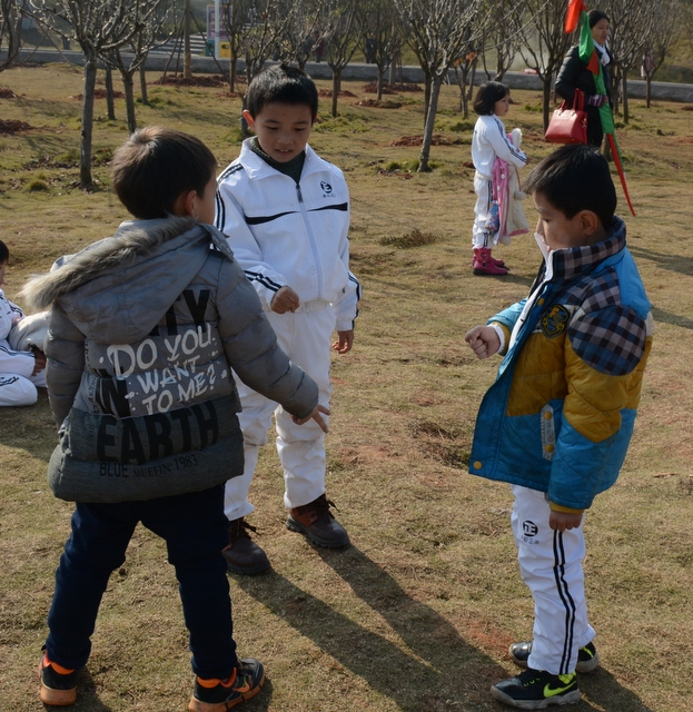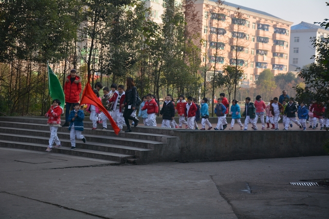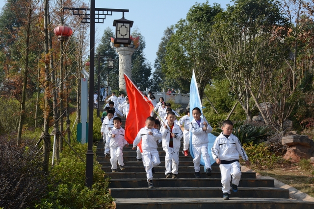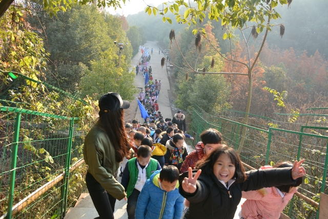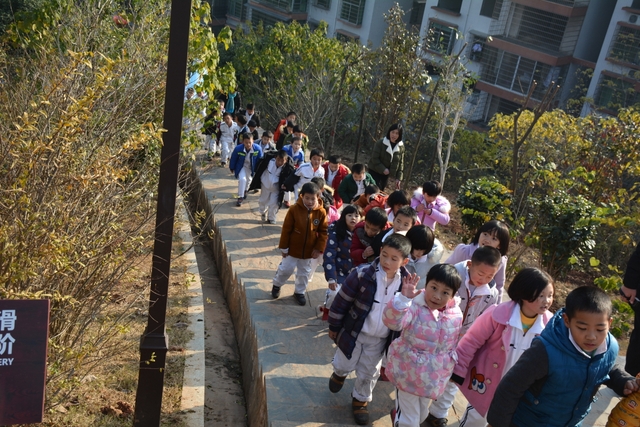 一路风景,一路高歌。9点10分,各班陆续顺利到达目的地——马阜岭公园。我们从东门入口的一条登山便道拾级而上。两旁种植的花草树木,还有灌木,孩子们幻想着要是到了春天,这漫山遍野的花开,会是怎样一幅美轮美奂的图画,想想,都让人醉了。孩子们尽情地享受着自然美景。漫步青少年活动中心,来到老年人活动中心,稍作休整后,进行合影。先是分班留影,再年级合影。合影完毕,是各班自由活动时间。霎时,草坪上到处都是撒欢儿的孩子们。班主任老师和配班老师带着孩子们围成一个个大圆圈,来了一场场现场联欢会。场面甚是壮观,一潮高过一潮。有武术表演,歌舞展示,诗歌背诵.......无数游人交口称赞,有的对孩子们竖起大拇指,有的在询问孩子们是那所学校的,有的拿出手机拍下这宝贵而幸福的一刻。