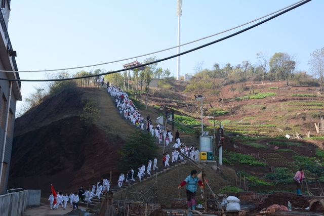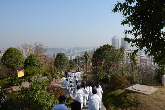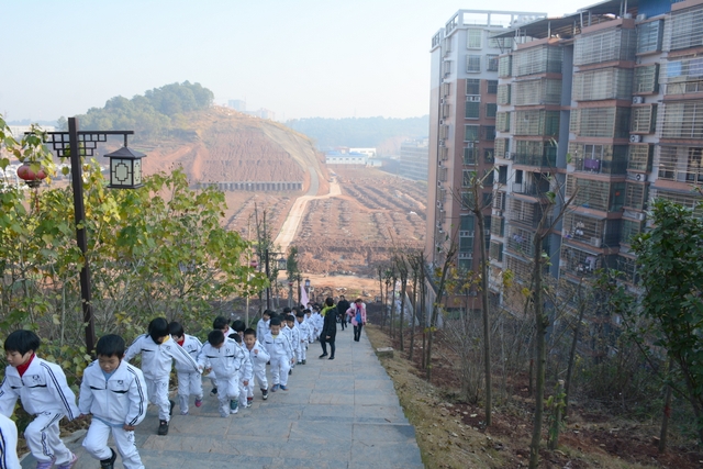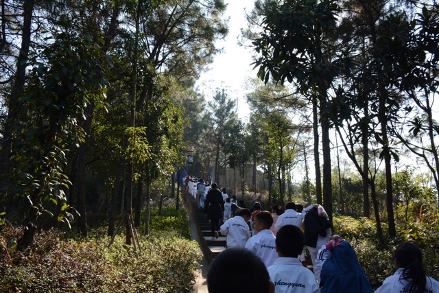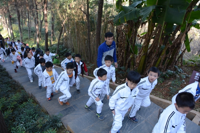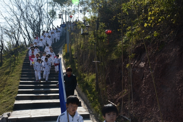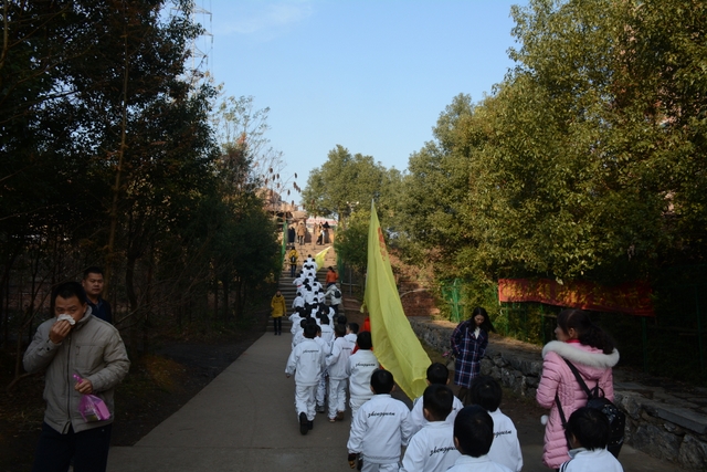 沿阶梯而上,顺西坡而下,冬日暖阳映照着孩子们活泼欢快的身姿。队列行进中,大家热闹而不喧闹,紧紧跟随着领队老师的步伐,沿路的行人见了,都不禁要为孩子们的乖巧守纪竖起大拇指。不知不觉间到了马阜岭山脚,一条长长的阶梯似乎蜿蜒而上直到天边,孩子们“哇”地惊叹出声,这么高啊。不怕,目的地近在眼前,眼前这最后一段路又怎能吓倒我敢于拼搏的正源学子呢?即使孩子们尚年幼,也甩开臂膀攀登起来,期待的心情反而在一步步的攀登中越发激昂。