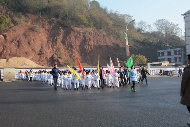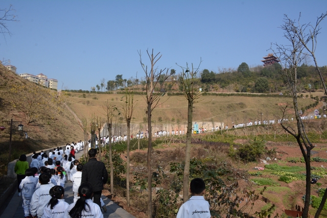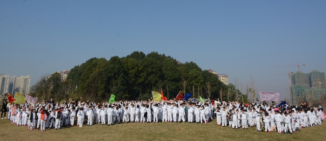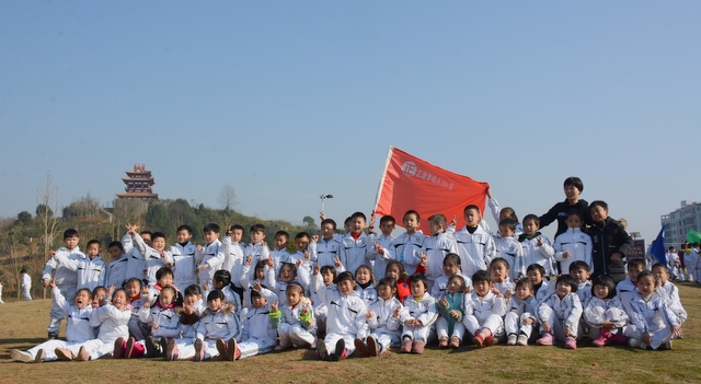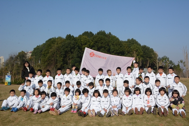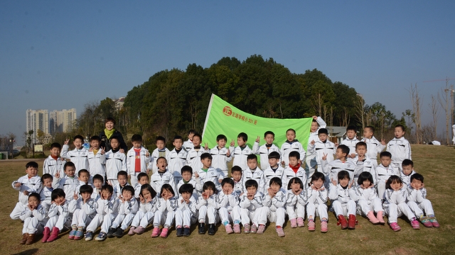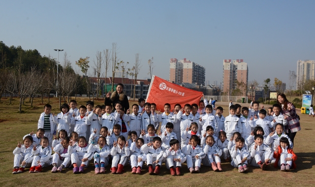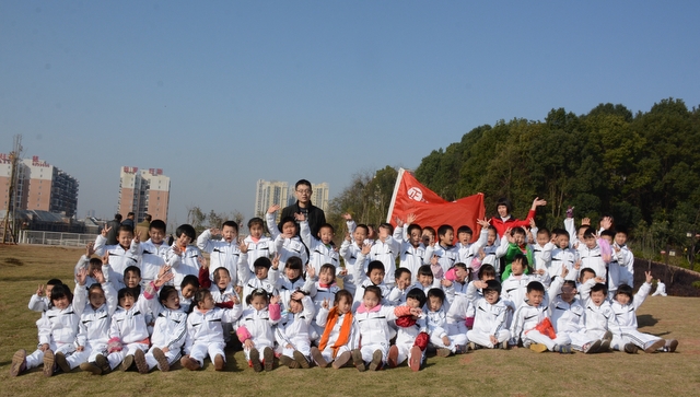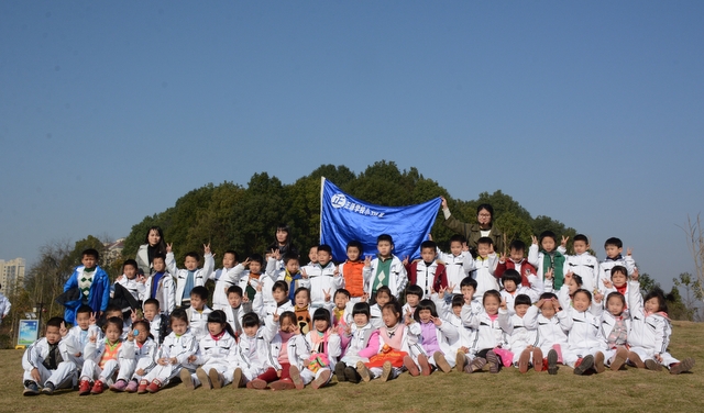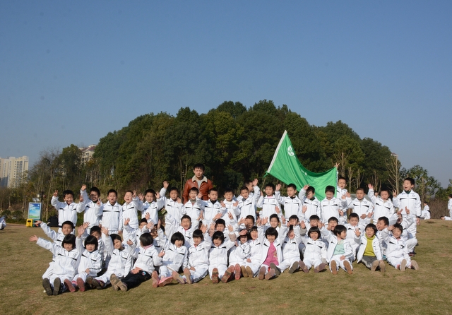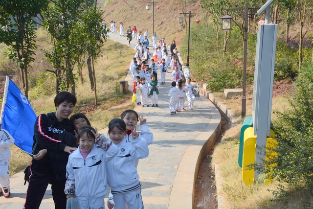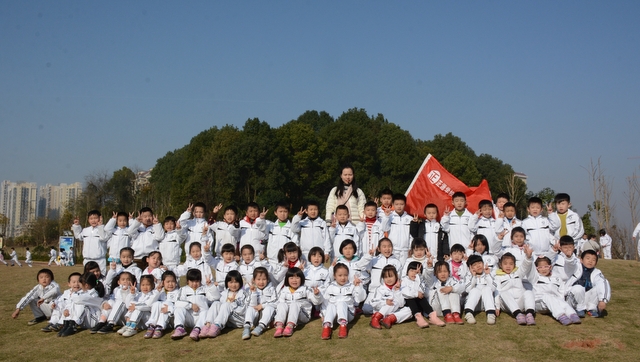 9点10分,在老师的加油打气声中孩子们到达了马阜岭公园。稍作休整,洁白的方队又汇集在马阜岭公园的中心广场上。老师先组织同学们分班留影,随后是年级合照。鲜艳的队旗迎风飘扬,和小小学子们开心的面孔一起定格在照片中。