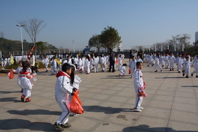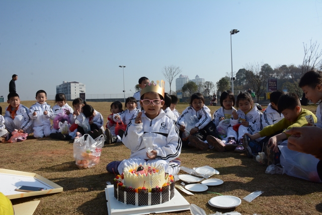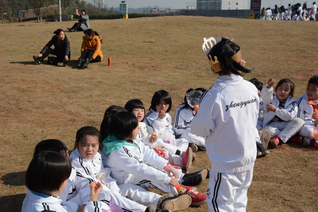 拍完照便是大家期待已久的各班自由活动时间。孩子们嬉笑着冲到宽阔的草坪上撒欢,尽情抒发自己的喜悦,或是三五成群,或是围坐一圈,到处可见孩子们白鸽般可爱的身影。对于冬游的节目大家酝酿已久,看,他们有的翻起了利落的筋斗,有的翩翩起舞,还有的在老师的组织下排好队伍,将一套武术操做得有模有样。这边在玩老鹰抓小鸡,那边又唱着歌玩起了丢手绢。游戏输了的孩子们一点也不沮丧,反而昂起下巴精神抖擞地展示出自己的才艺,唱歌,跳舞,朗诵,打拳,令围观的老师和家长眼花缭乱,既要鼓掌,又要拍照,被我们的小艺术家逗开了怀。