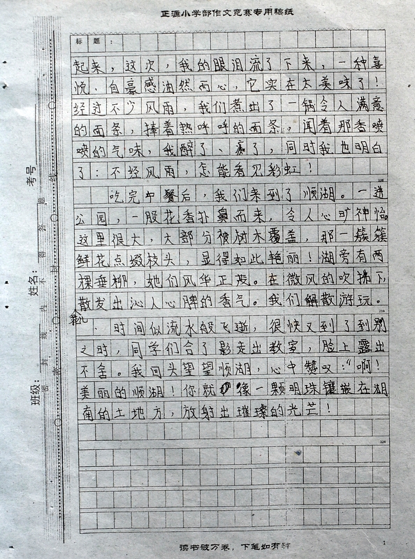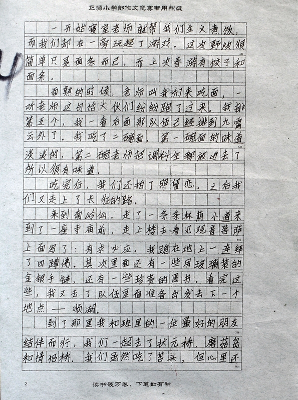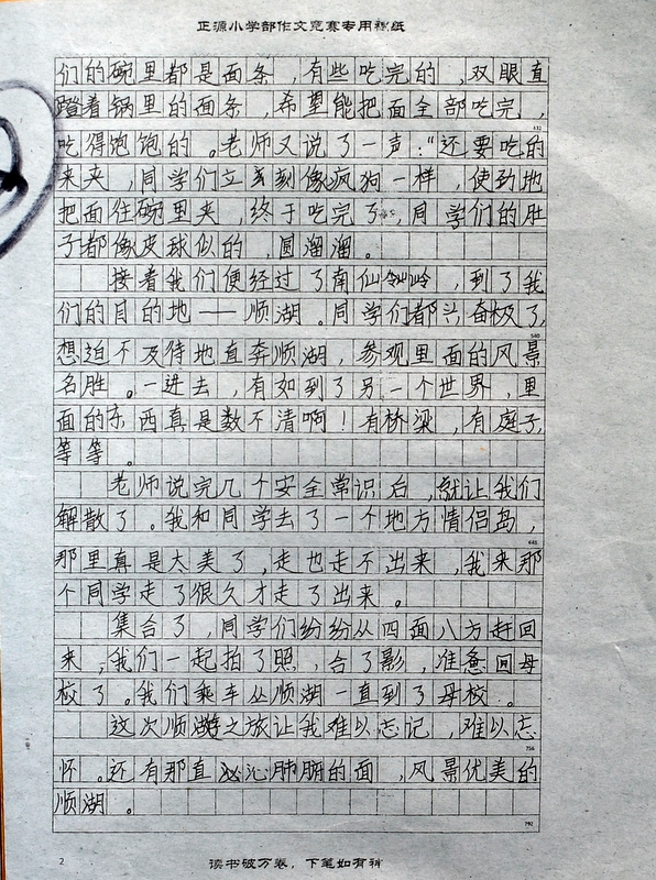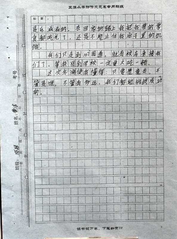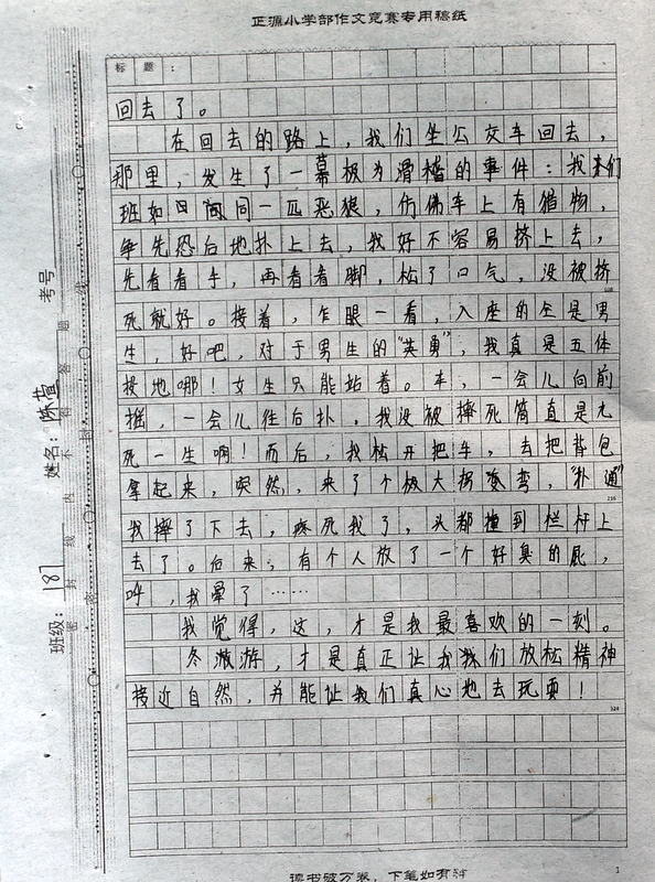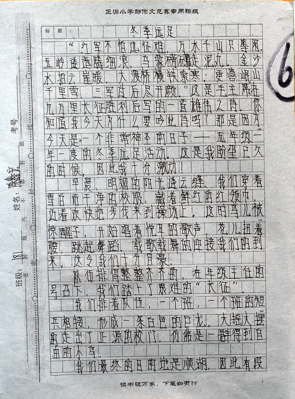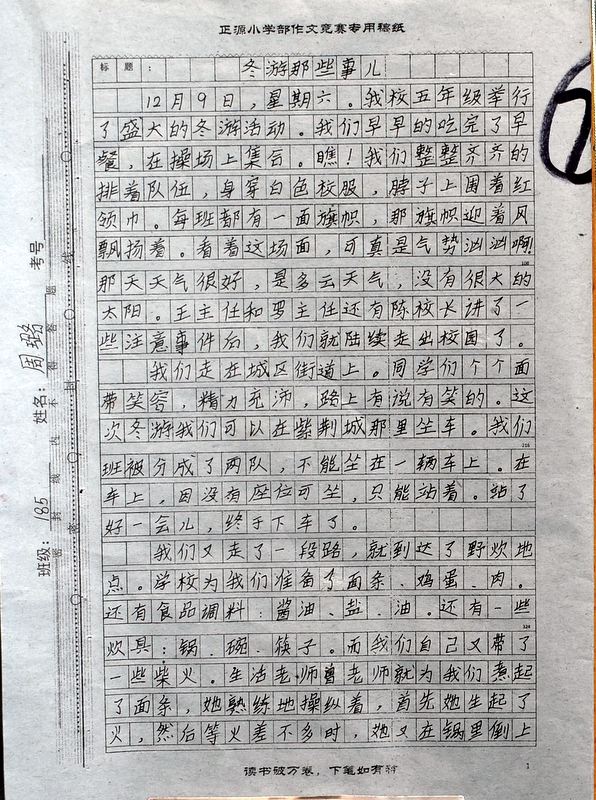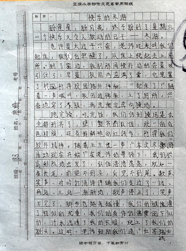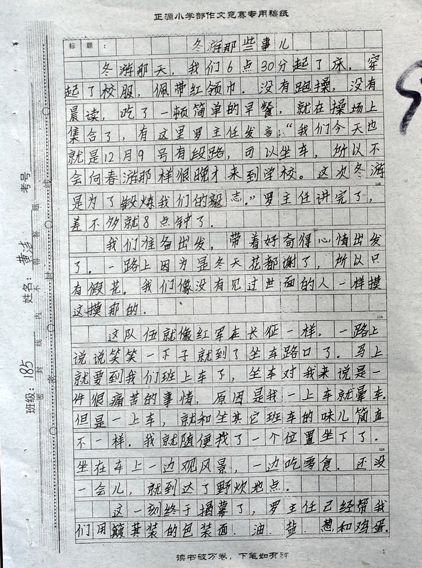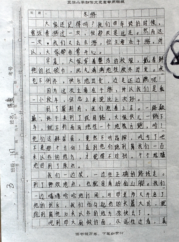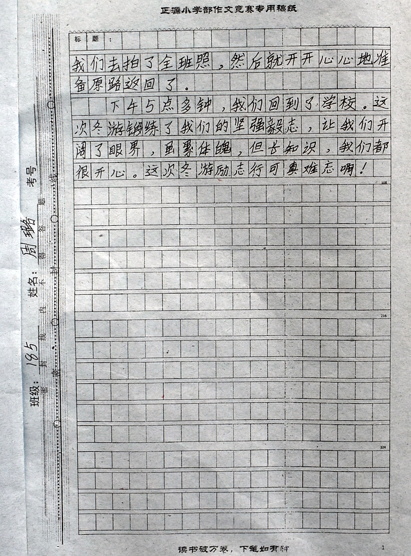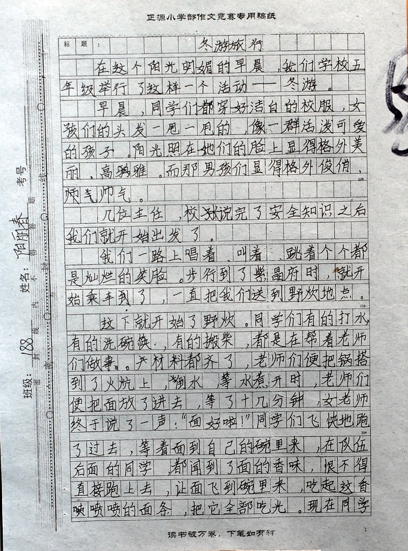 本次“冬游”作文大赛是继“祖国在我心中”作文大赛后年级举行的第二次作文大赛。