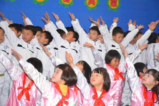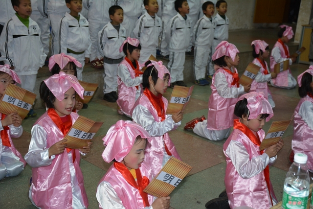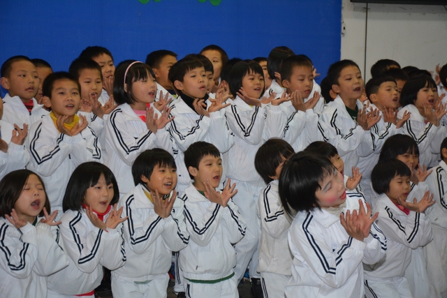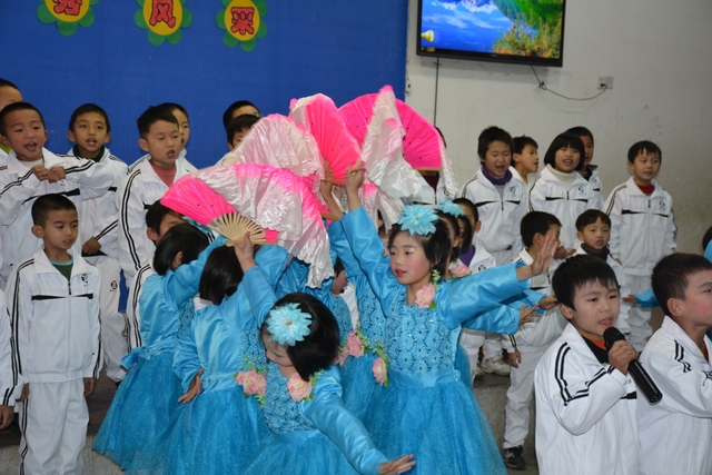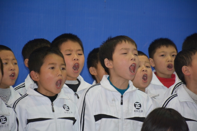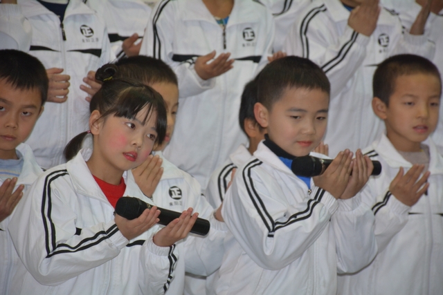 “别紧张、放轻松、你们是最棒的!”在老师的带领和鼓励下,各个班级依次上场。一开场,312班孩子们带来的《植物妈妈有办法》就令人耳目一新:舞台上,孩子们时而摇头晃脑,时而微闭双眼,时而低头沉思,时而载歌载舞。在晴朗辽阔的蓝天下,在正源这块肥沃的土地上,在《田家四季歌》里,我们倾听了孩子们的心愿《我真希望》; “明月几时有,把酒问青天…….” 听!优美的童声演唱绝不亚于王菲啊,叫人难以移步;瞧!众多学生半跪地上,一男孩趴在地上,他们身着古服,模仿古人吟诵《明日歌》时的一言一语,抑扬顿挫,听起来煞是有趣。“床前的月光,窗外的雪,高飞的白鹭,浮水的鹅,边塞的战士,回乡的客…..”一群小勇士们慷慨激昂地把一个不朽的、富有传奇色彩而又真切动人的故事——《木兰辞》呈现在观众眼前;《诵四季》《游子吟》《古诗串烧》伴随着古典音乐,朴实又新鲜,孩子们边吟边唱边演,有板有眼,声情并茂。孩子们赋予这些脍炙人口的诗篇全新的生命力,让之前只存在于平面中的人、事、物都“活”起来,变为栩栩如生的立体画面,他们身临其境地感受了诗文的魅力,领悟了国学的风韵。