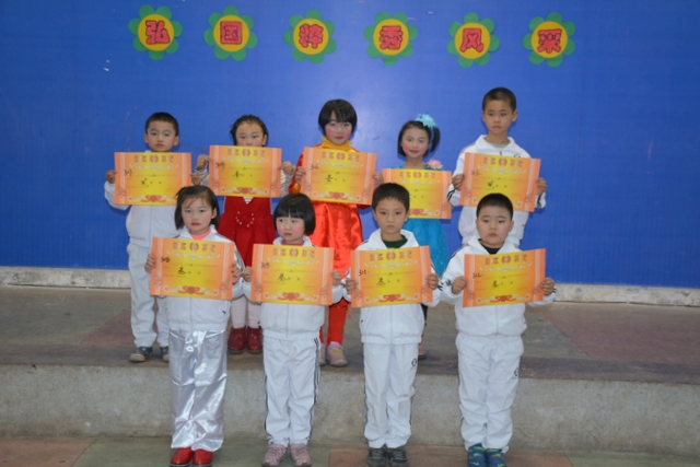 本次比赛以班级为单位,以自选为主要形式,同时鼓励穿插舞蹈、吟唱、书画等艺术表演形式。随着耳熟能详的音乐,一群身穿蓝色裙子的小精灵在舞台上缓缓抬头,一举手,一投足,是那样的优雅,她们的脸上是那样恬静,似乎沉浸在美妙的音乐中。随着旋律的变化,孩子们的优雅范也随之变化,她们又蹦蹦跳跳,活泼欢快。一个转身,一次跳跃,拉开了比赛的帷幕。