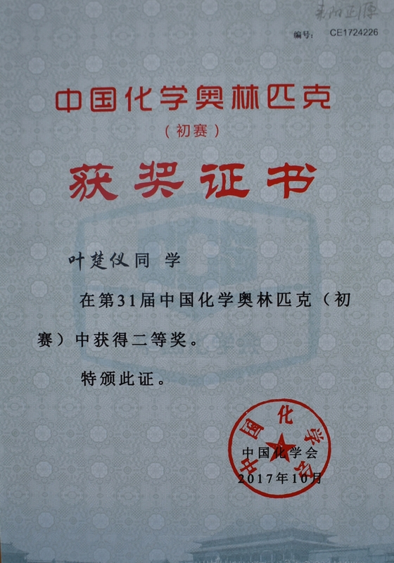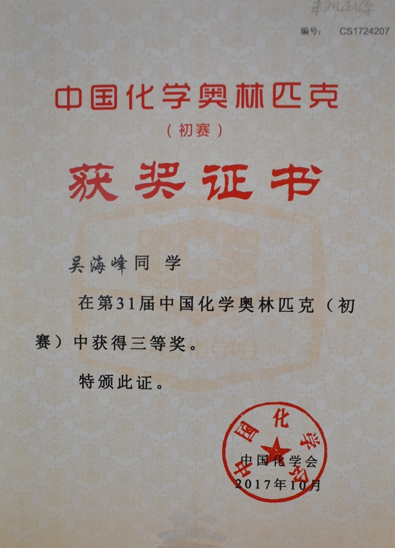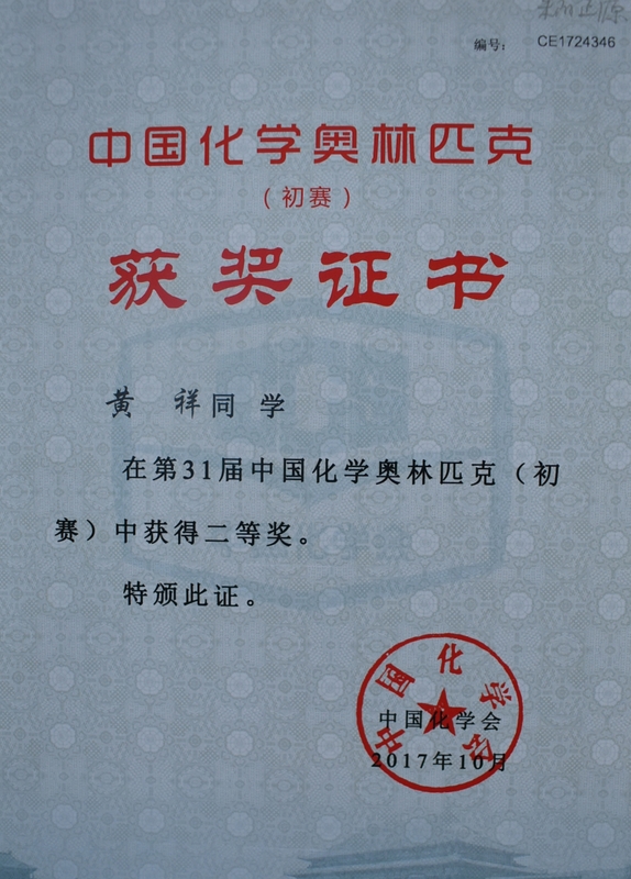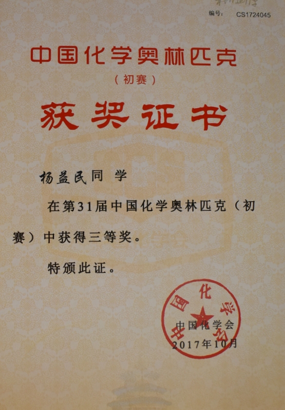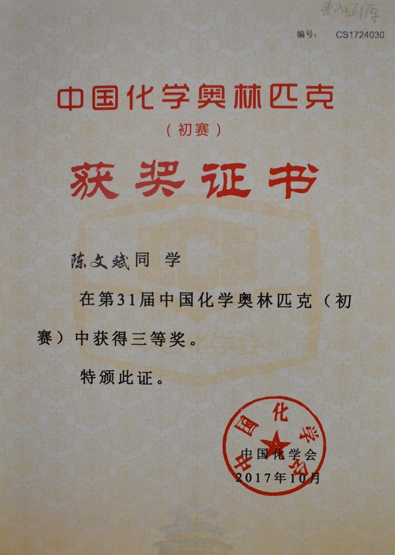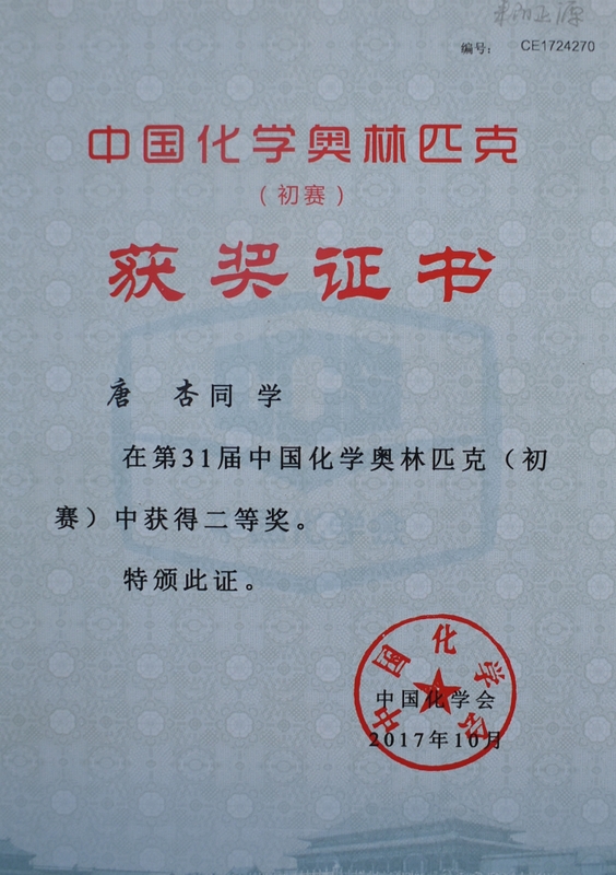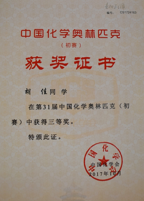 我校学生在31届中国化学奥林匹克竞赛中获奖