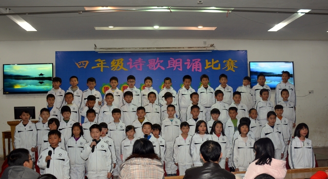 为弘扬中华民族优秀传统文化,提高学生的人文素质和道德情操,推动校园文化建设,1月3日晚,四年级在报告厅举行了诗歌朗诵比赛。