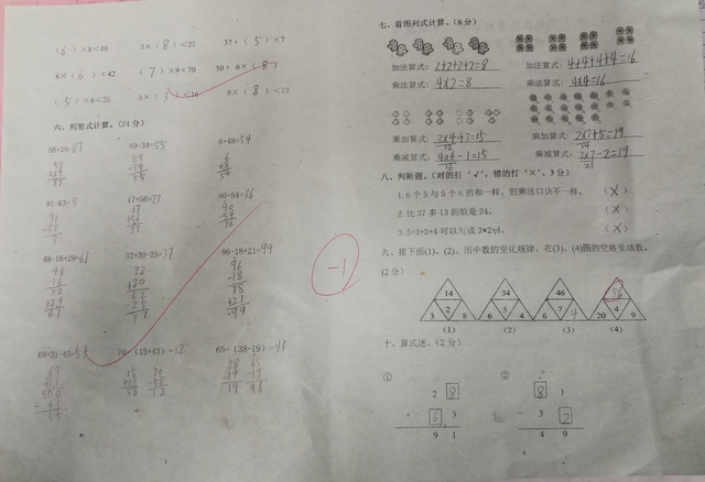 本次比赛时长40分钟,年级学生全员参与,内容的难度符合孩子们的计算水平,但又有一定的量和难度,题型有口算、混合计算、列竖式计算、看图列式计算、判断题及巧算。比赛开始的哨声一响,每个考场都安静下来,秩序井然。除了孩子们翻试卷的声音,就只有他们写字发出的声音了。他们沉着冷静,答题神速,将平时训练的速算技巧用于实际。从孩子们紧张的表情中,可以感受到他们奋勇争先的决心和信心。
