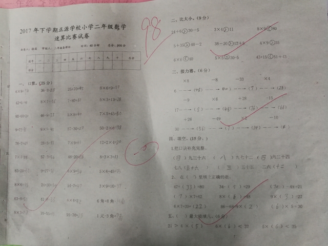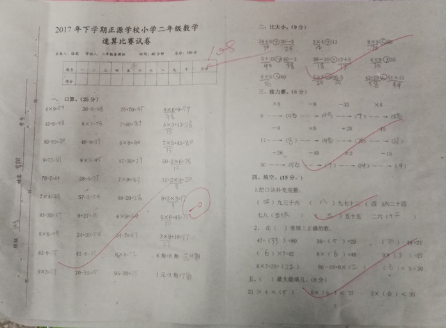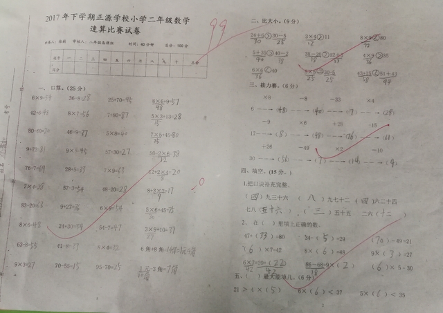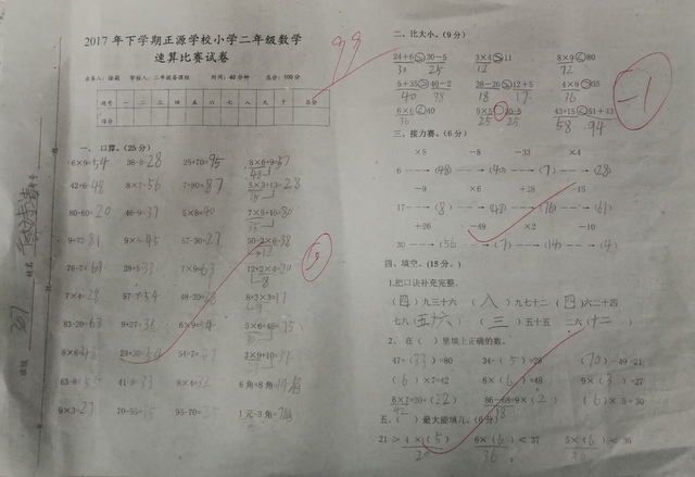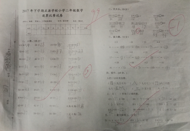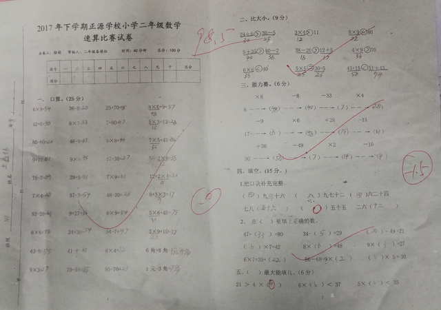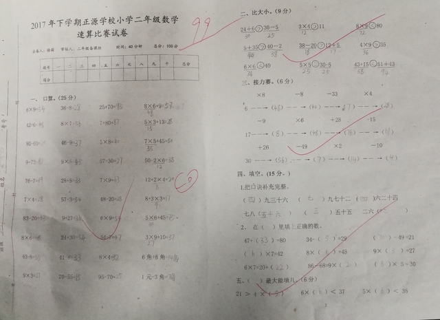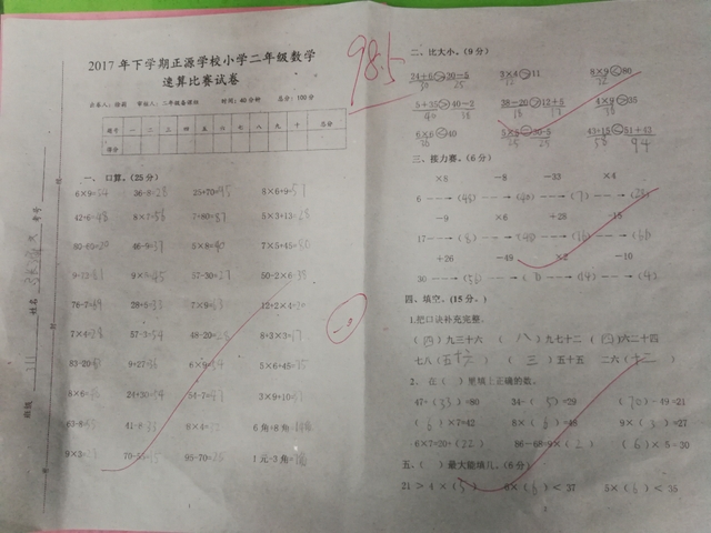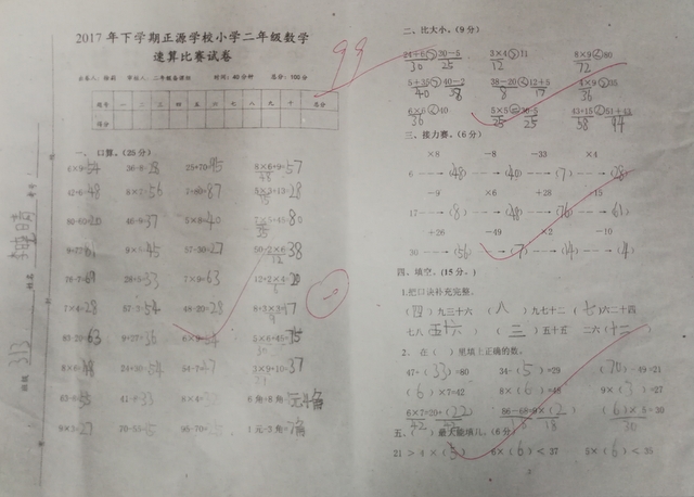 计算是学习数学的基础,计算能力的培养是低年级数学教学的主要任务之一。为了进一步提高孩子们的计算速度和准确性,培养他们平时作业细心计算的好习惯及竞争意识,1月6日晚,小学部二年级举行了速算比赛。