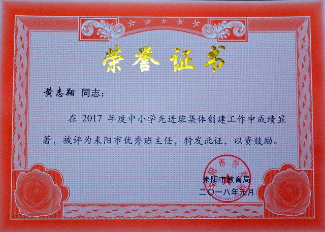 正源学校8个班集体和8名班主任受耒阳市表彰