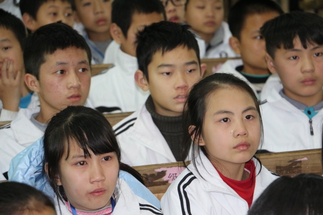 准初一年级的二十二位学子,精心准备了诗歌朗诵表演《他们的名字,叫抗战老兵》,献给三位抗战老兵及所有为民族解放而奋斗的无畏战士。学子们的声音时而低沉舒缓,呜咽哀伤;时而铿锵有力,慷慨激昂;时而气势雄伟,苍凉悲壮。台上表演者仿佛身临其境,台下观众也已泪眼朦胧……