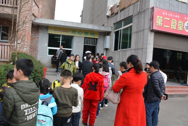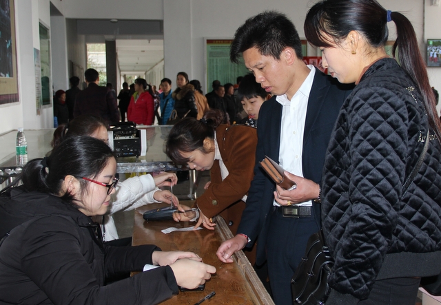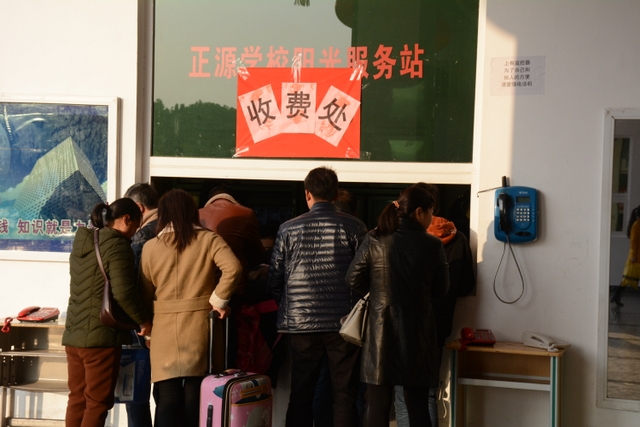 小学部各年级都在一楼设立了咨询台,每栋楼都设置了缴费处、刷卡处,方便家长缴费,每个班的班主任都坚守在班级为学生登记注册。四年级各班都按照年级主任阳明权的部署,在黑板写着欢迎同学们返校学习的标语和报名须知。213班班主任肖晓和老师写着“祝大家新年快乐学习进步”、216班梁文柏老师写着“热烈欢迎同学们返校学习,祝学习进步阖家幸福”等美术体粉笔字,让家长和同学们看了赏心悦目,温馨怡人,感觉温暖如春。