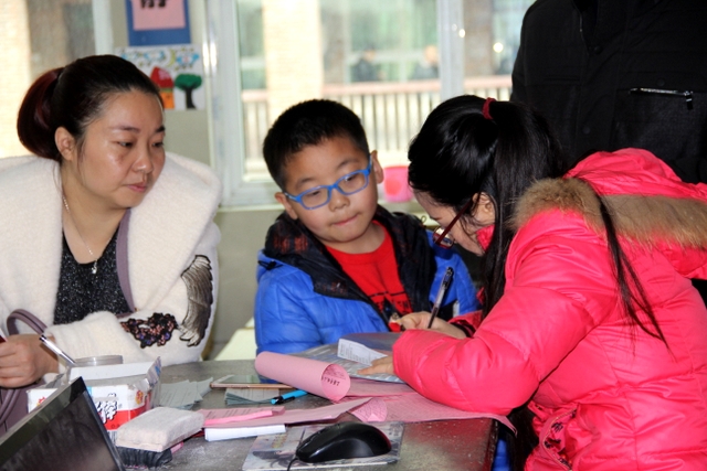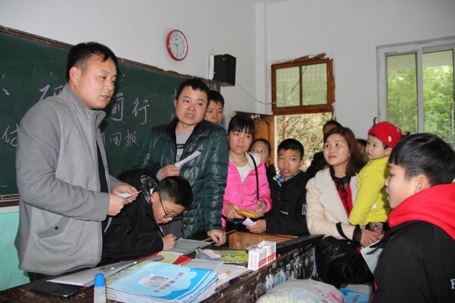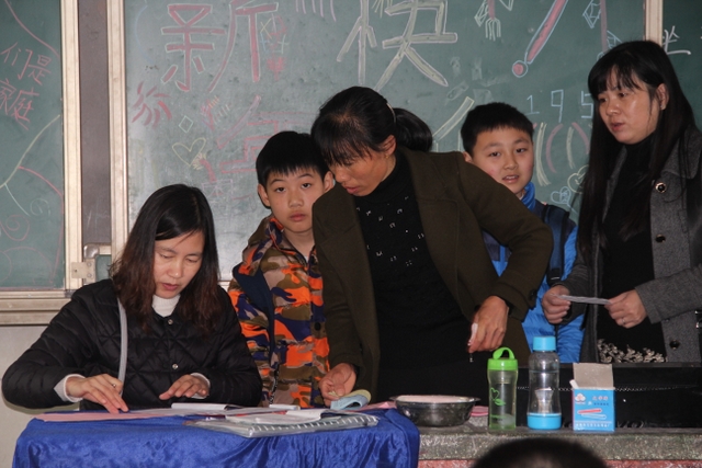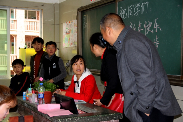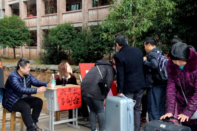 五年级各班黑板上也是一样写着欢迎标语,暖意融融。走进187班,新接手这个班的班主任国园老师正在满面笑容地接待家长报名。笔者与曾维政同学交谈,这是个很爽快、阳光,也很谦虚的孩子。他说,他是小水人,二年级上学期考进正源,各方面都还适应,就是早晚一个人不敢上山,需与同学们结伴去玩耍。今年的寒假过得很愉快,作业不多,写完后看电视,走亲戚。问他成绩怎么样,他说一般般,近期目标是再努力一点,争取考上准出一。但我简单地考察了一下他的阅读课学习情况,发现他对答如流,掌握得很好,比如三英战吕布中三英指谁,三顾茅庐每次带着谁,官渡之战、赤壁之战分别是谁与谁对阵等,全部答对正确,绝不是自己所说的“一般般”。小学部一年级330班门楣上还挂着流动红旗,班主任梁姿老师一面给学生报名,一面回答笔者的提问,她说,自己是2015年秋季进入正源,在小学部低段循环教学,感觉很充实,学到了很多在大学里学不到的东西,所带班级多次获得流动红旗,新的一年希望把班级带得更好,让每一个孩子都能像正源的办学理念所说的那样健康成长。