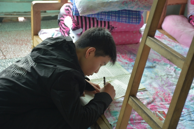高二年级120班是一本班,刘源同学说他初一年级考进正源,今年寒假除了完成老师布置的家庭作业,还另外买了数学资料做,平时在班上属中游,所以要加倍努力。来到126班时,过道上有个同学在看英语书,他说来学校的路上堵车,迟到了,同学们去上体育课,自己就在这里等一会。他说他叫谷海,也是一本班学生,直升准高一,但成绩不拔尖,高一时自费参加了北京励志行,现在在班上属于前十名,想考到前三名,以后争取考上北京的大学,或者湖南的名校。