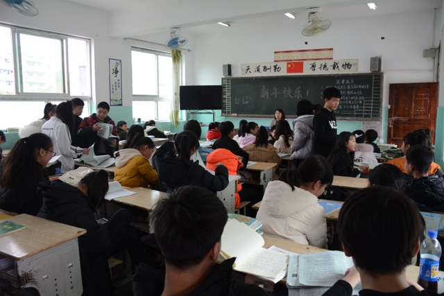 钟琼佳老师连续几届带文科清华毕业班。他说,班上55名学生,除极个别同学有特殊情况请假外,绝大部分同学寒假都自愿补课到腊月二十九,在家仅仅休息了大年三十和初一初二初三共四天时间,初四一早就回到学校上课。钟老师说,本届文科班学生明显强于上一届,我们的目标是百分之百考进二本以上。