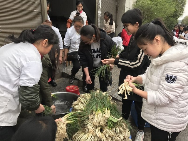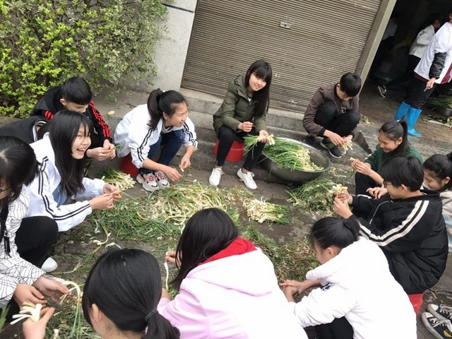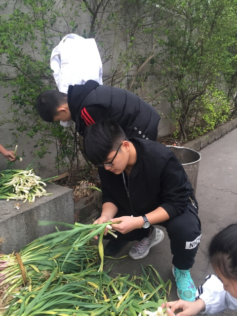 同学们积极踊跃,热情高涨,兴奋不已。班主任把同学分为三个小分队,分别负责择菜、洗菜、洗碗三项工作。