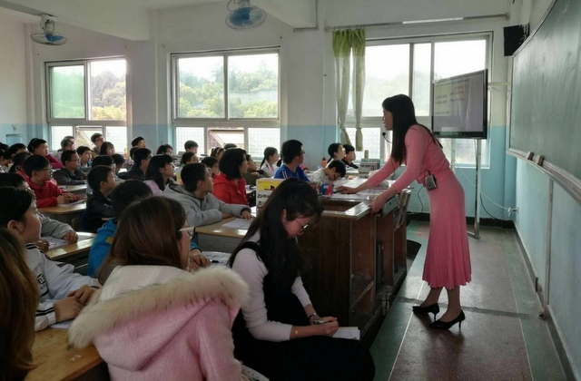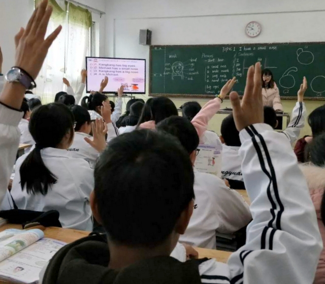 小学部优选上初中部的青年老师邓铭芳在准初一年级365班上《I have a small nose》