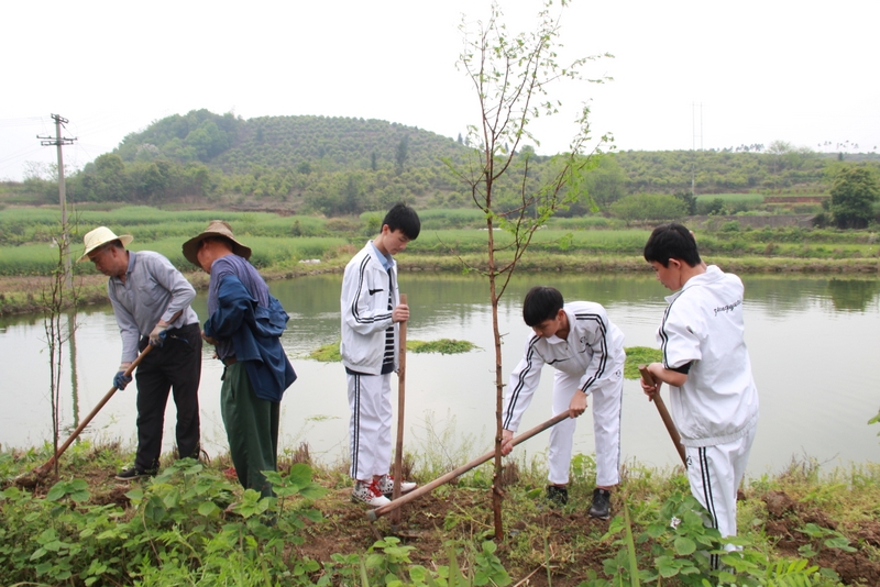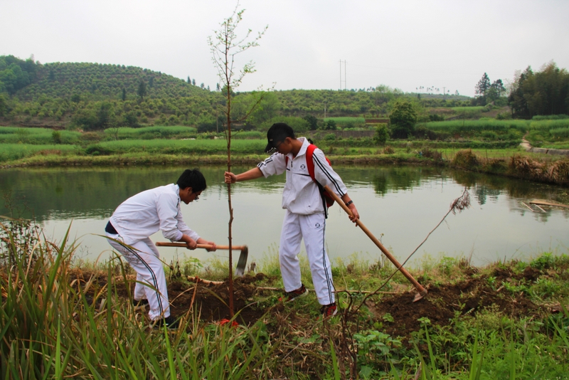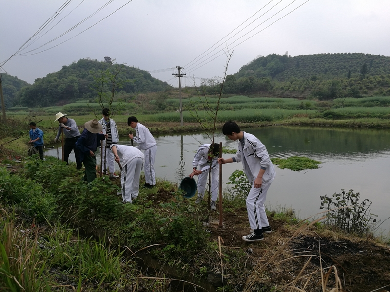 2018年3月31日,又是一个春光明媚的日子。一大早,一辆装有220棵水杉树苗的卡车和三辆分别载有50多个学生和10多个教职工的校车从正源学校出发,直奔小水镇畔塘村义务植树。上午9点多钟到达目的地,在当地乡村干部的指引下,同学们围绕村边、路旁、田埂以及水库边上迅速行动起来,有的挖坑、有的把树、有的提水,现场热火朝天,孩子们通红的脸上洋溢着劳动的快乐。近两个小时,完成植树任务。