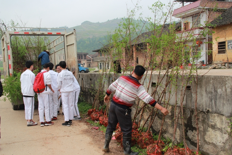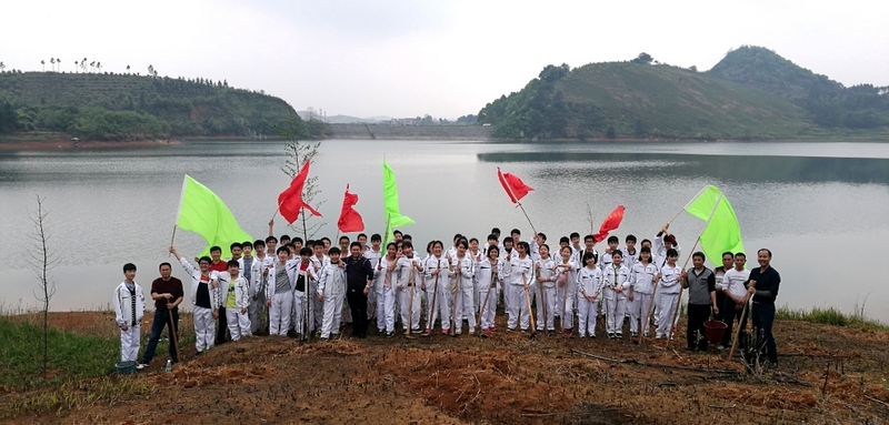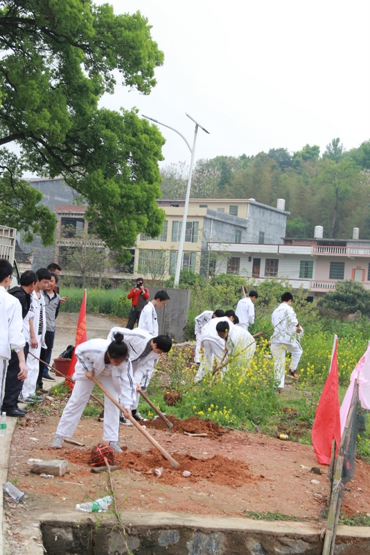 这是正源学校今年第四次下乡开展义务植树公益活动。前三次分别是在大义镇五雷仙风景区、大和圩乡莲花高冲村、太平圩乡太平村,总共出动师生170多人次,挖机和汽车十几台次,植有水杉和樟树800多棵,其中水杉树高的有四五米,有樟树直径达15厘米,最小的也有2米高。