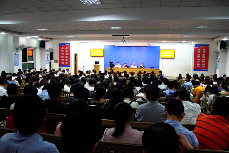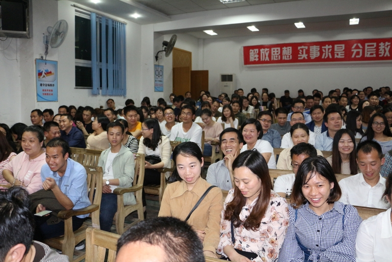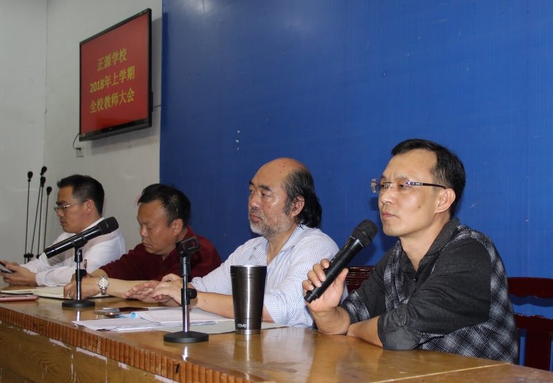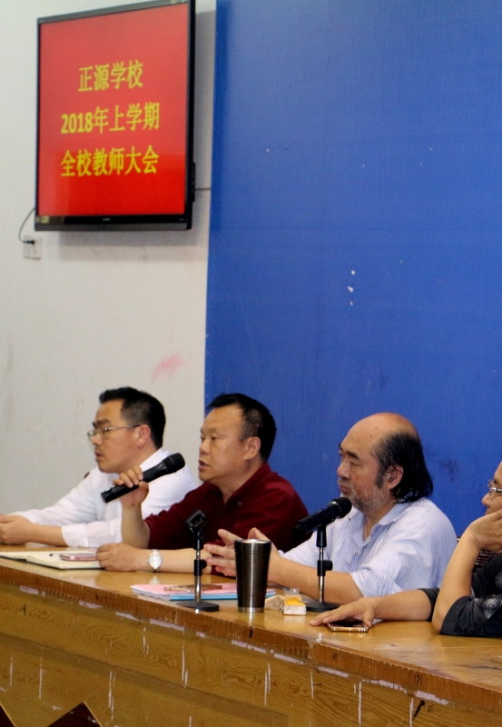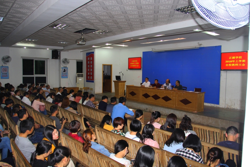 4月2日晚,正源学校2018年上学期全体教师大会在报告厅举行。罗校长在会上畅谈国内外大好形势,展望正源2018年高考前景,讲述教师五一旅游意向,泰然自若,喜形于色,信心满满,娓娓道来,不时赢得阵阵掌声。