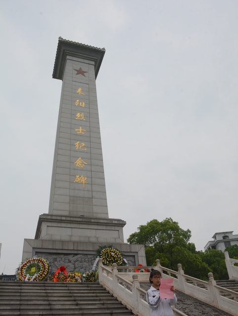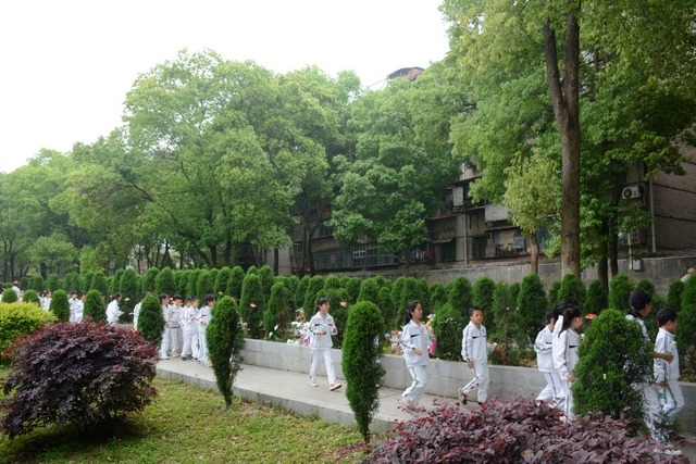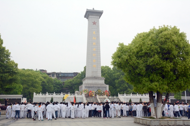 伴随着这些讨论声,我们踏入了烈士陵园,顿时,沉重而庄严的气氛笼罩着大家。学生代表在烈士陵园的革命英雄纪念碑前主持了隆重而庄严的扫墓仪式。首先用敬献花圈、三鞠躬的形式表达了对先烈们的深切哀悼和无尽的敬仰之情。校党支部委员、准初一年级主任曹秋文致辞:“前人栽树,后人乘凉,耒阳如今的发展变化离不开革命先烈们的英勇战斗,他们的精神将永存于心,千秋不衰、万古不朽。”