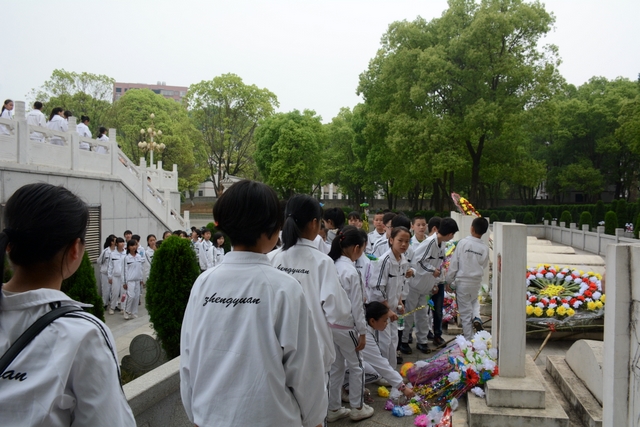 在庄严肃穆的悼念仪式中,学生代表发言表示,烈士们走了,但他们的灵魂连同精神正熠熠生辉,我们要牢记烈士的革命遗志,努力学习,为实现中华民族伟大复兴的的中国梦而努力奋斗!