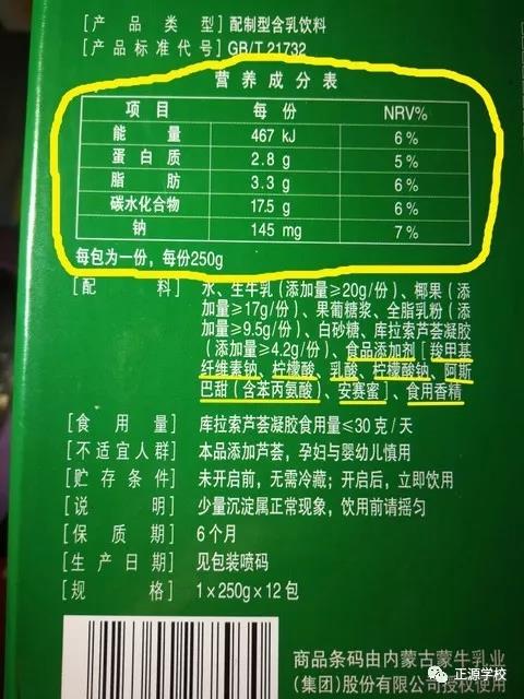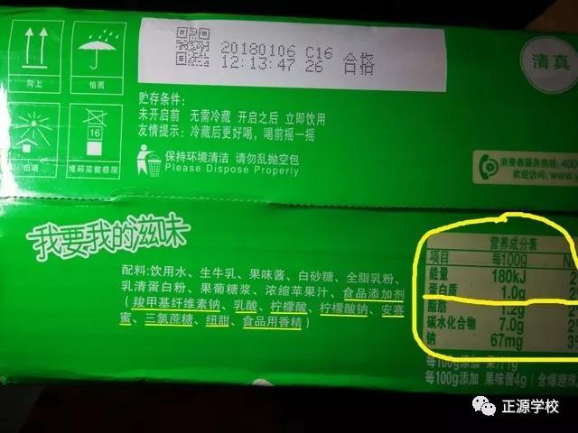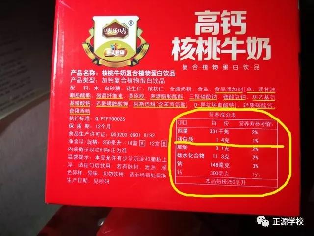 以每人每天所需蛋白质为例,据科学测算,因体重不同,从小学一年级到高中三年级,每人每天所需蛋白质大约为50克到 100克,这些蛋白质的主要来源为肉、蛋、鱼。我校学生人均每天消耗猪肉牛肉鸡腿等不下150克,含蛋白质不少于24克;每天米面500克,含蛋白质40克;鸭蛋、鱼、尤其是富含蛋白质的豆腐,每天可提供约20克蛋白质,加上其他食品所含蛋白质,应该与学生所需蛋白质相当。如果想用含乳饮料来补充蛋白质,一盒“牛奶”250毫升,最多补充2克,根本就起不到什么作用。更重要的是,每天都吃“牛奶”,违背了食品多样化的原则,加上添加剂的副作用,说不定就是你在孩子身上埋下严重疾病的祸根,将来后悔也来不及。事实上,我说的这种严重后果,早已在其他国家发生了。所以,我一直把含乳饮料视作垃圾食品。