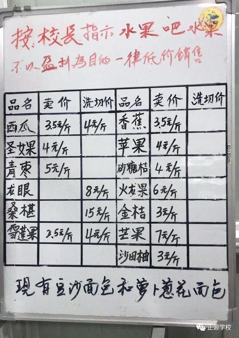 说到这里,你们可能会说:好吧,手机、零食、假牛奶都不带了,带水果和面包总没错吧。更有学生和家长质疑,既然不准学生带,学校为什么又要卖呢?而且还卖那么贵,无非是学校想搞垄断赚大钱。其实不然,投资正源15年来,梁董事长至今没有拿走一分钱分红。如果学校真的以营利为目的,不如开几个超市钱来的又多又快。况且禁止学生带食品,明显会增加食堂饭菜的消耗,增加办学成本。学校创办之初,考虑来自不同家庭孩子们的人格平等和尊严,避免因贫富差距造成同学间的隔阂,学校实行一日四餐不刷卡、不用现金,大家各取所需,商店也不卖食品。但近几年,随着大家生活水平的提高,考虑到一万六千多师生,总免不了出现一时不想吃饭的情况,所以我们供应用土鸭蛋和纯白糖加优质面粉做的蛋糕,提供最优质健康的面包。考虑到部分学生对水果的需求,水果吧还提供各种时令水果。