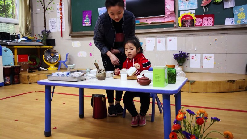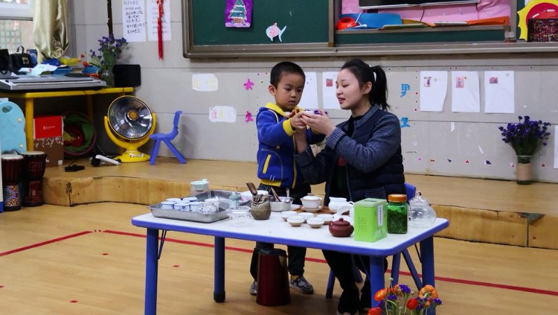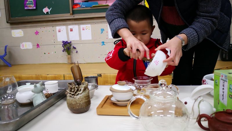 中国人有“客来敬茶”的习惯,是中华民族的文明和礼仪,同时也是一种艺术享受。谷雨时节正是新茶采收的时节。借此时机,我们邀请了茶艺师周女士来教小朋友们茶艺。为什么教小朋友茶艺?从最直接的愿望来讲,是希望能给孩子们更多不同的体验和感受。带他们了解茶叶的知识,认识茶具,了解泡茶的步骤;调动他们的五官,去看,去闻,去品茶;让他们动手泡茶,奉茶。在这个过程中,教孩子们礼仪:站姿、坐姿,奉茶的姿势,以及长幼有序、尊师重道的传统美德。