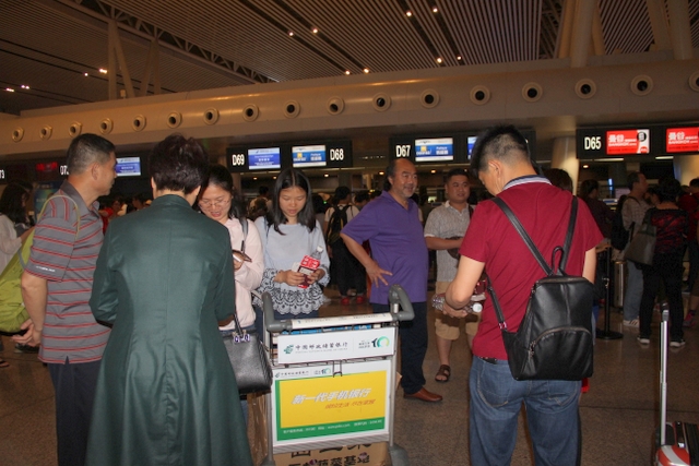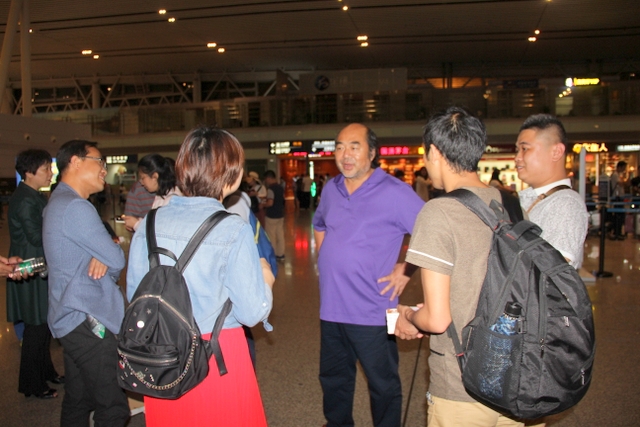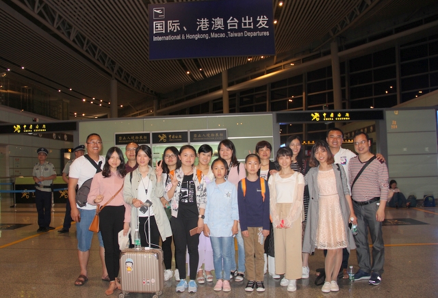 在长沙东服务区吃过学校自备的盒饭,二十多分钟后到达机场。在这里照完合影,正在进行行李安检托运时,身有微恙在长沙休养的罗校长偕夫人梁老师前来送行,老师们非常感动,并祝校长早日康复,好率第二批老师来泰国会合,一并展示正源学校的教师风采。