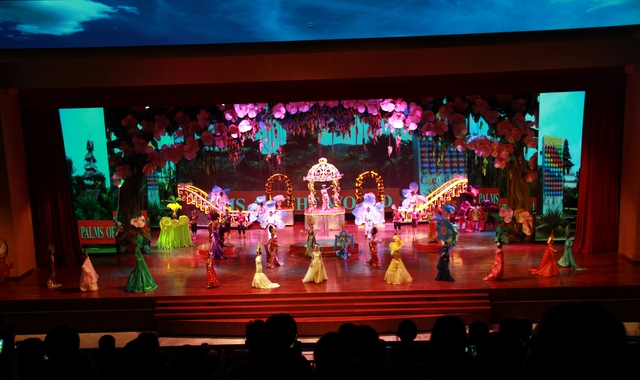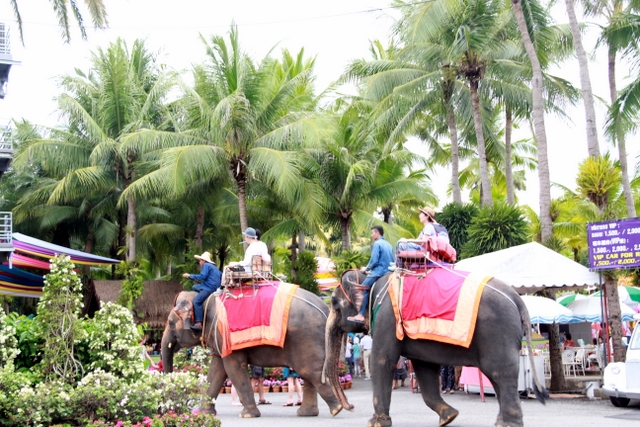 因昨天住下很晚,今天上午十点半导游才安排叫床,十一点出发。一个多小时后,来到本次泰国游的第一个景点:东芭乐园。导游介绍,东芭乐园的创办人是泰籍华人黄亮先生,泰国十大首富之一。午餐过后看民族歌舞表演,表演者据说就是村寨中人,个个是帅哥靓妹。他们演绎泰国历史地理、民俗风情,质朴、地道。有丰富多彩的动植物扮演展示,有美轮美奂的祈神仪式表演,有滑稽幽默的泰国国粹——泰拳表演,有明快动人、气势磅礴的击鼓表演,有和谐欢快的《泰南部与泰北部》风景、人事表演,有重现泰缅大战的大象现场表演,以及女声表演唱等,整个舞台富丽堂皇,美不胜收,半个小时的表演让人大饱眼福。